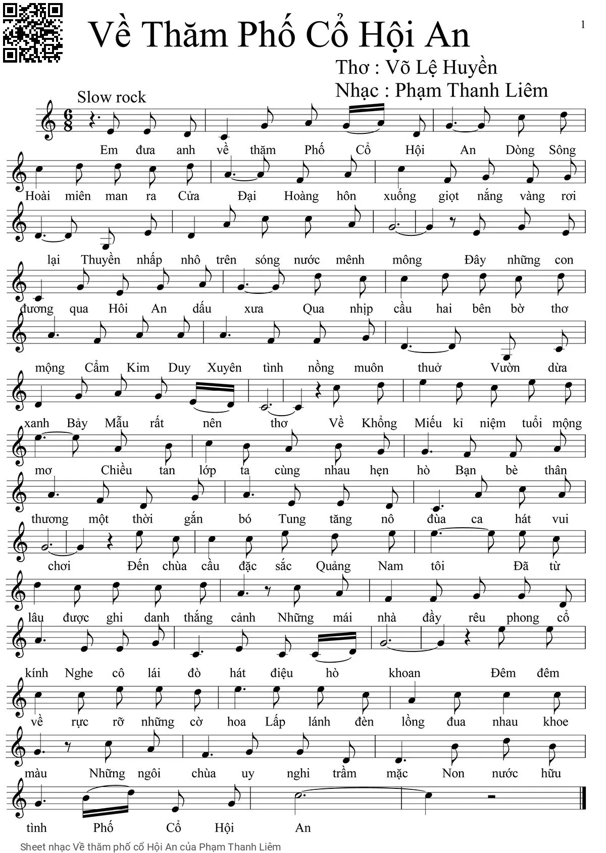 Phạm Thanh Liêm Em đưa anh về thăm phố cổ Hội An Dòng sông Hoài miên man ra Cửa Đại [PDF] [Sheet] [Lời H.A] [Mp4/Midi]