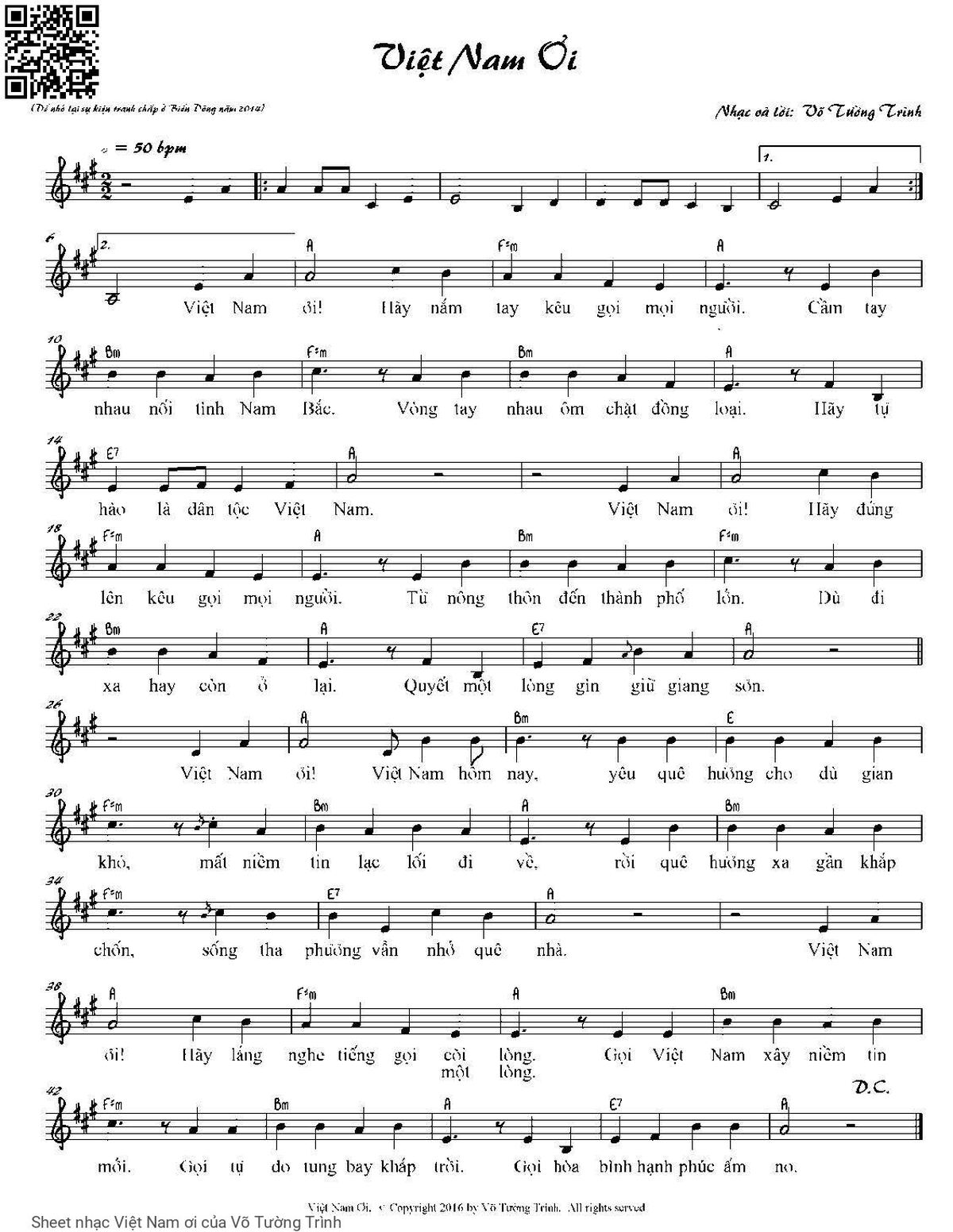 Võ Tường Trình Việt Nam ơi [PDF] [Sheet] [Lời H.A] [Lời bình - giai thoại]