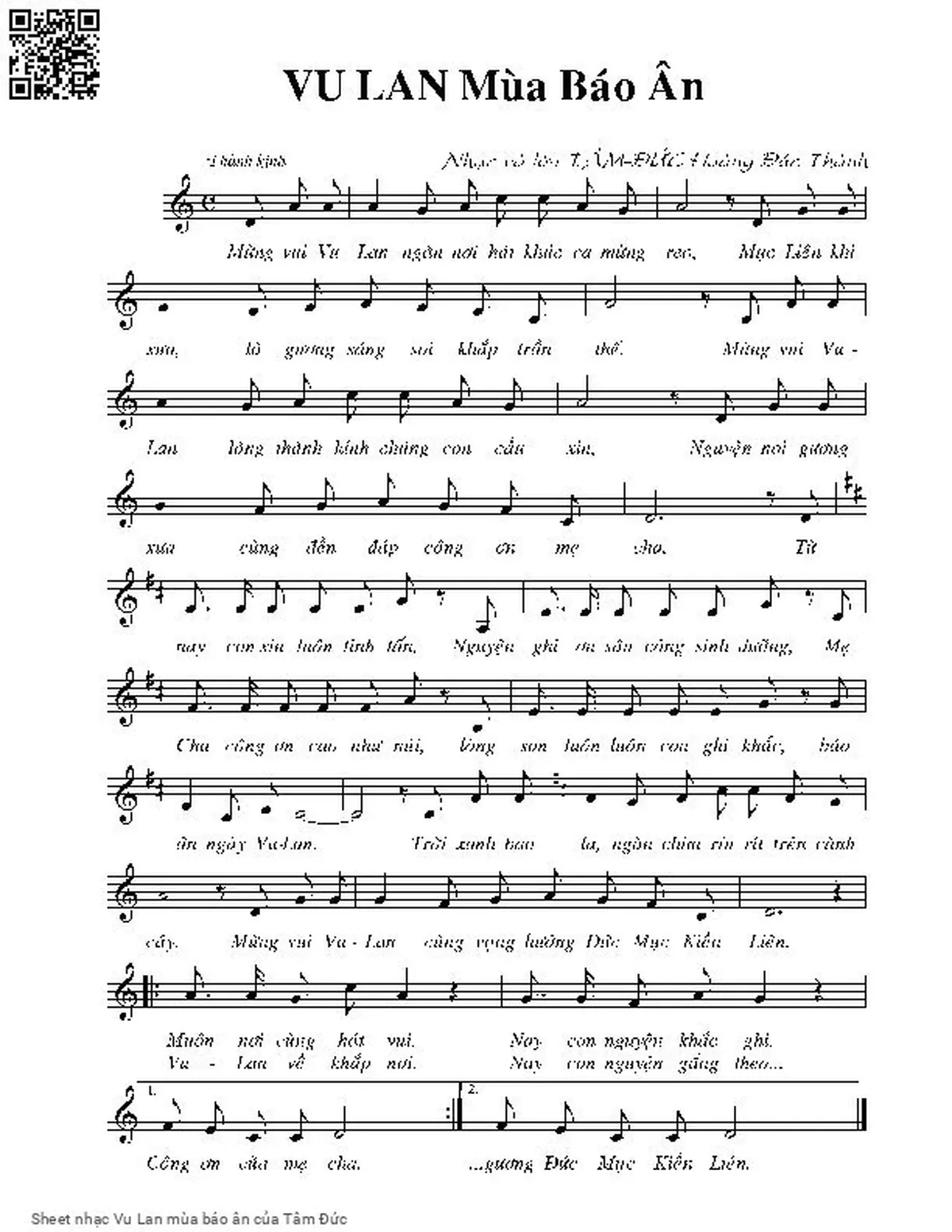 Tâm Đức Mừng vui Vu Lan ngàn nơi hát khúc ca mừng reo [PDF] [Sheet] [Lời H.A] [Mp4/Midi]
