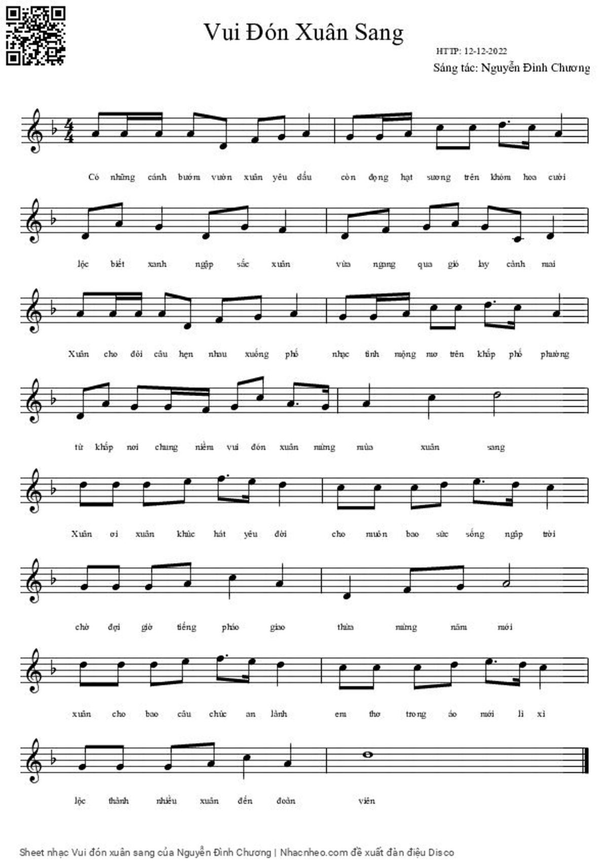 Phần nghe hát Vui đón xuân sang (Nguyễn Đình Chương) được nhúng từ Youtube, Musescore hoặc link ngoài và chịu sự kiểm soát bản quyền của bên thứ ba đó, vì vậy có thể bị xóa hoặc chèn quảng cáo bất kỳ lúc nào. Nếu bạn không nghe - xem được ca sĩ hát tức là đã bị Youtube hoặc Musescore kiểm soát.