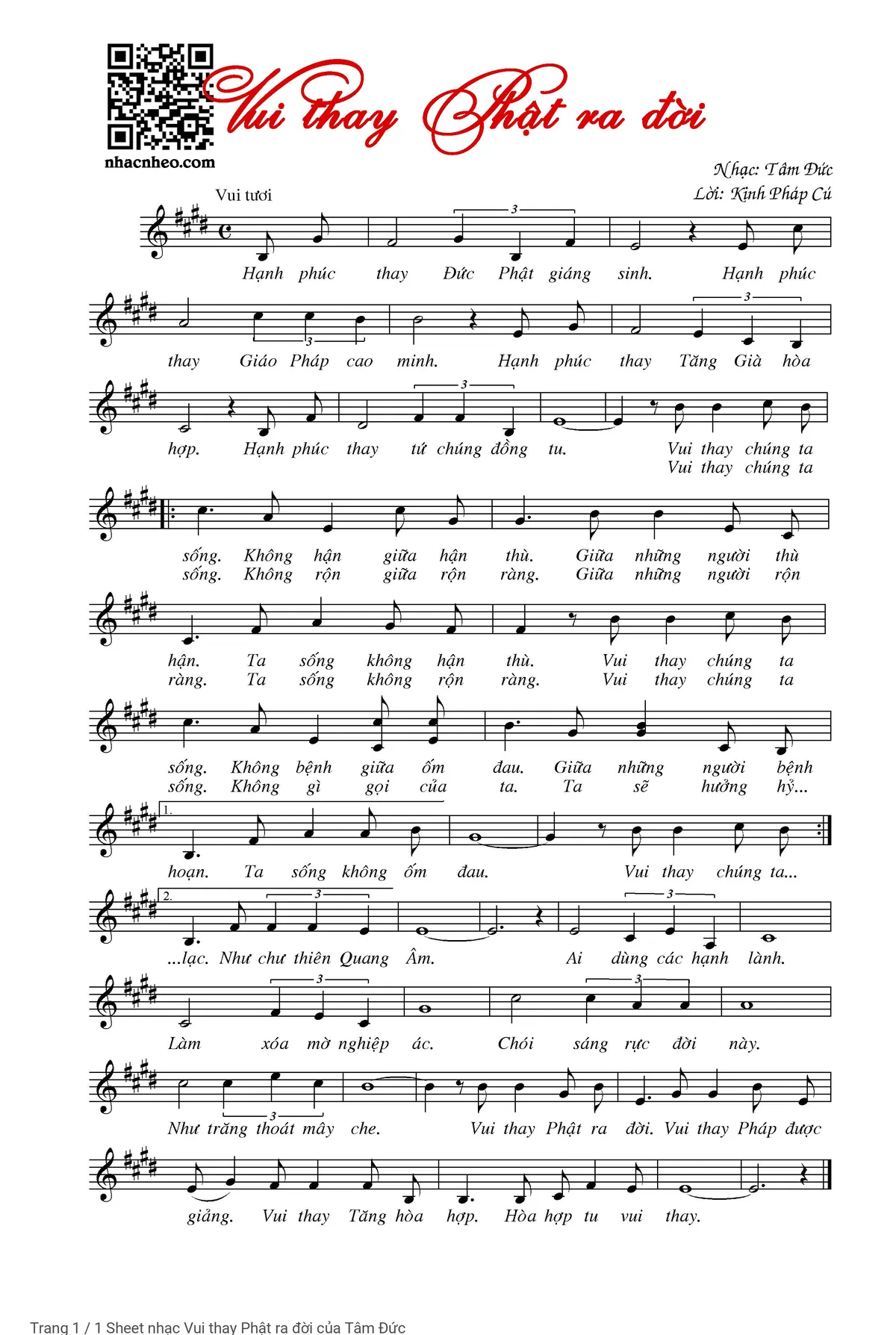 Tâm Đức Hạnh phúc thay Đức Phật giáng sinh Hạnh phúc thay Giáo Pháp cao minh [PDF] [Sheet] [Lời H.A] [Mp4/Midi]