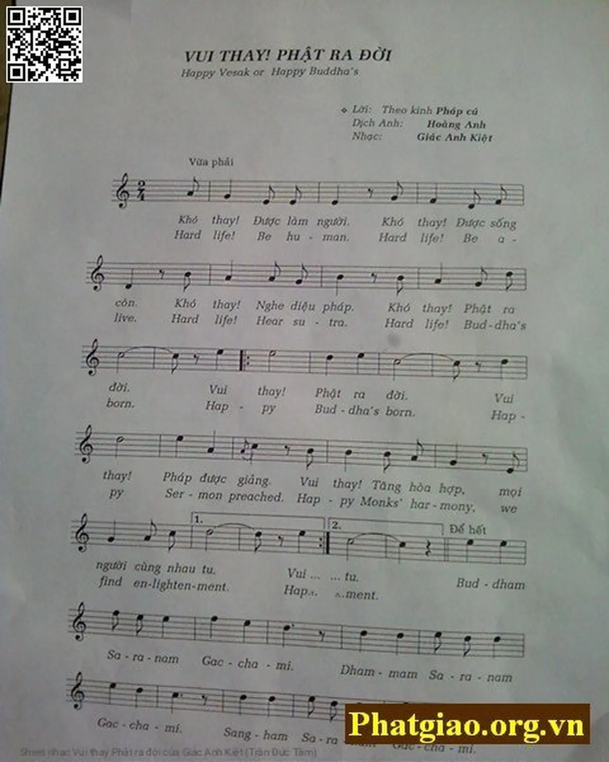 Các sheet PDF tương tự Vui thay Phật ra đời: