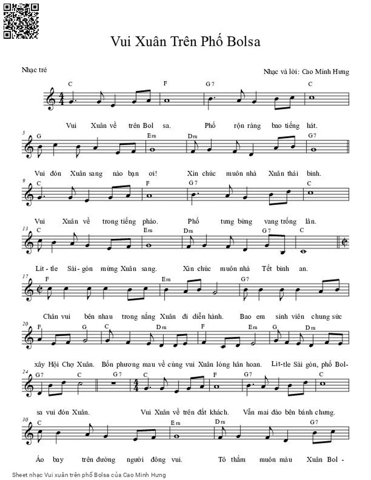 Cao Minh Hưng Vui Xuân về trên Bol sa Phố rộn ràng bao tiếng hát [PDF] [Sheet] [Lời H.A] [Mp4/Midi]