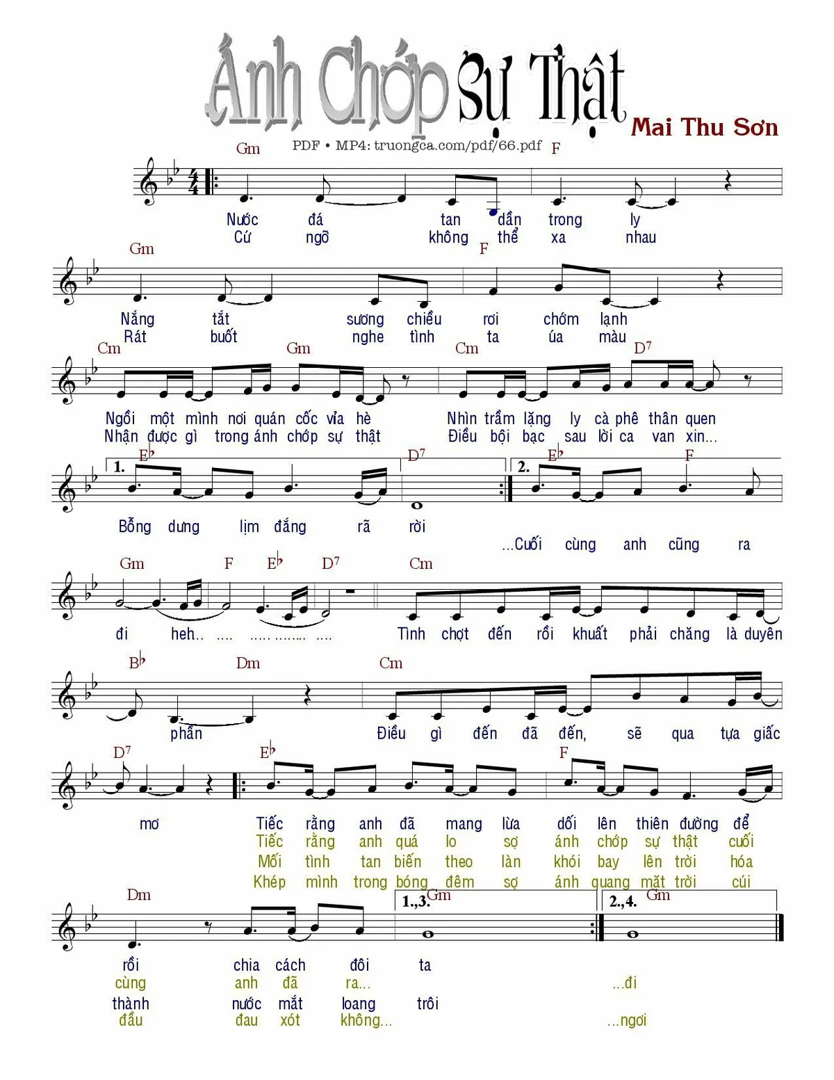 Mai Thu Sơn Nước đá tan dần trong ly Nắng tắt sương chiều rơi chớm lạnh [PDF] [Sheet] [Lời H.A] [Mp4/Midi]