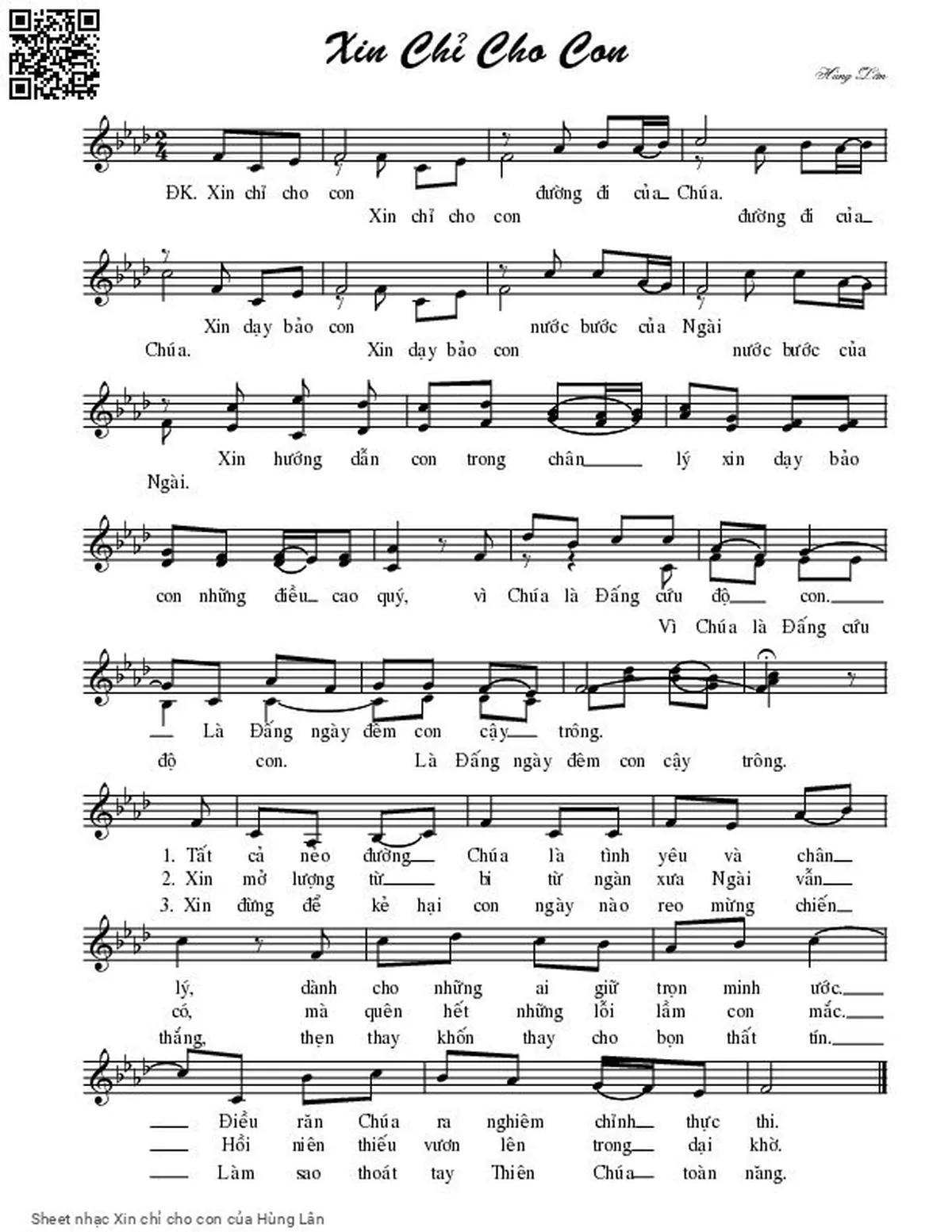 Hùng Lân Xin chỉ cho con Đường đi của Chúa [PDF] [Sheet] [Lời H.A] [Mp4/Midi]