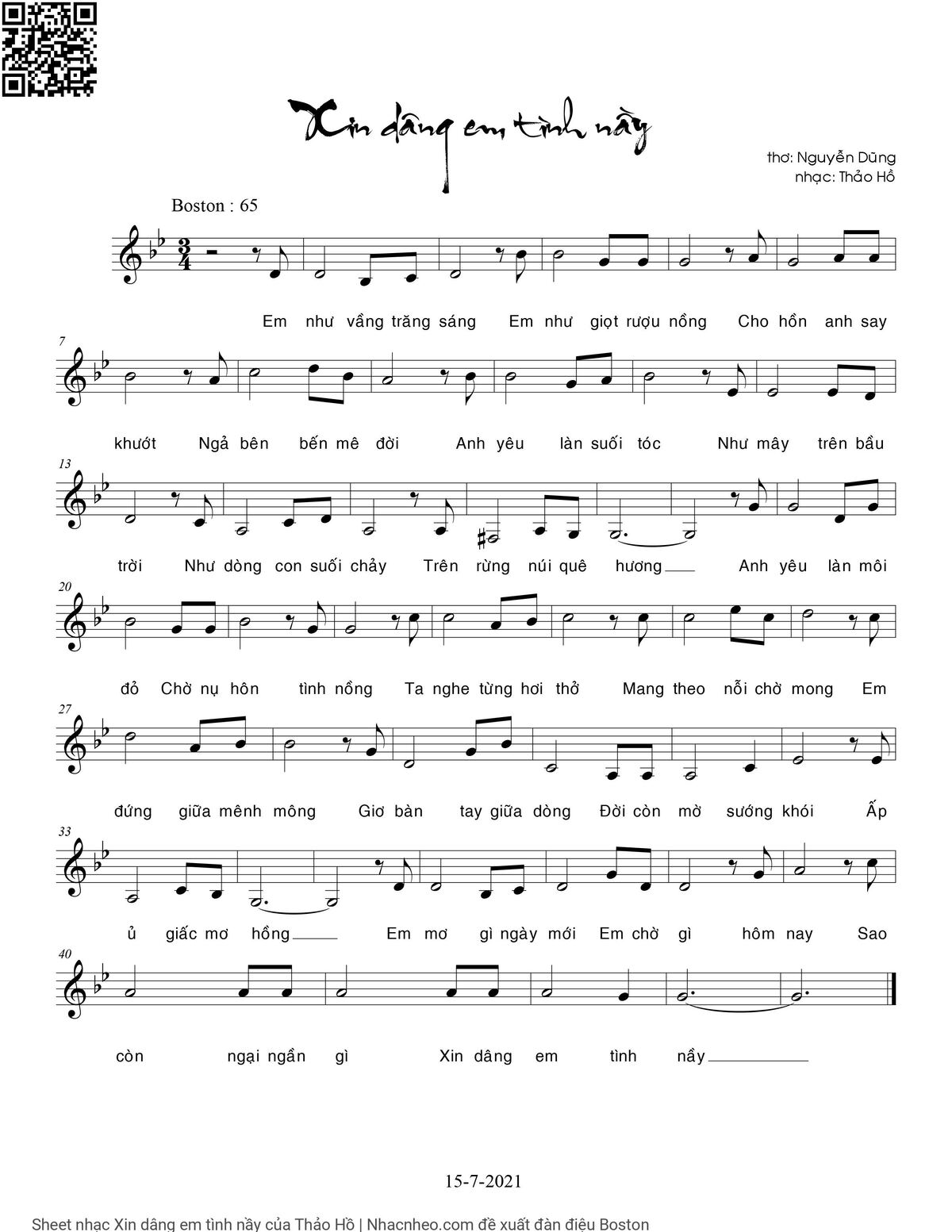 Thảo Hồ Em như vầng trăng sáng Em như giọt rượu nồng [PDF] [Sheet] [Lời H.A] [Mp4/Midi]