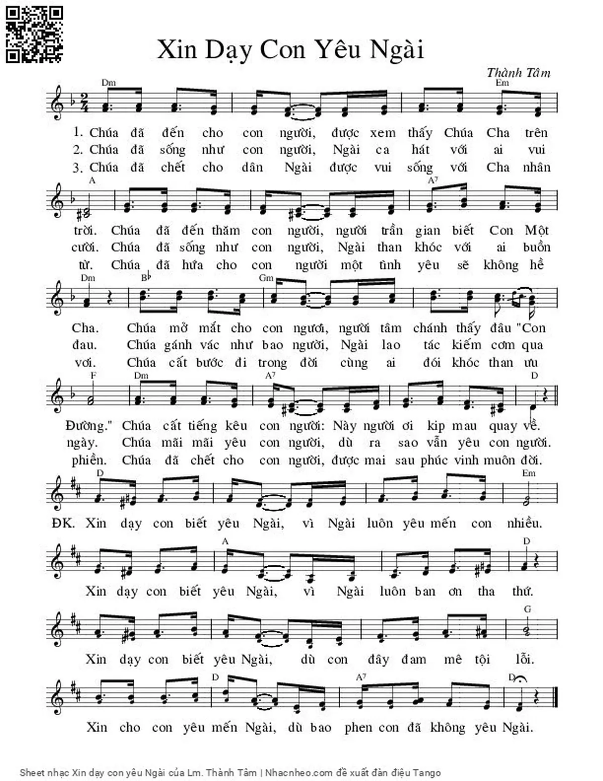 Các sheet PDF cùng tên Xin dạy con yêu Ngài:
