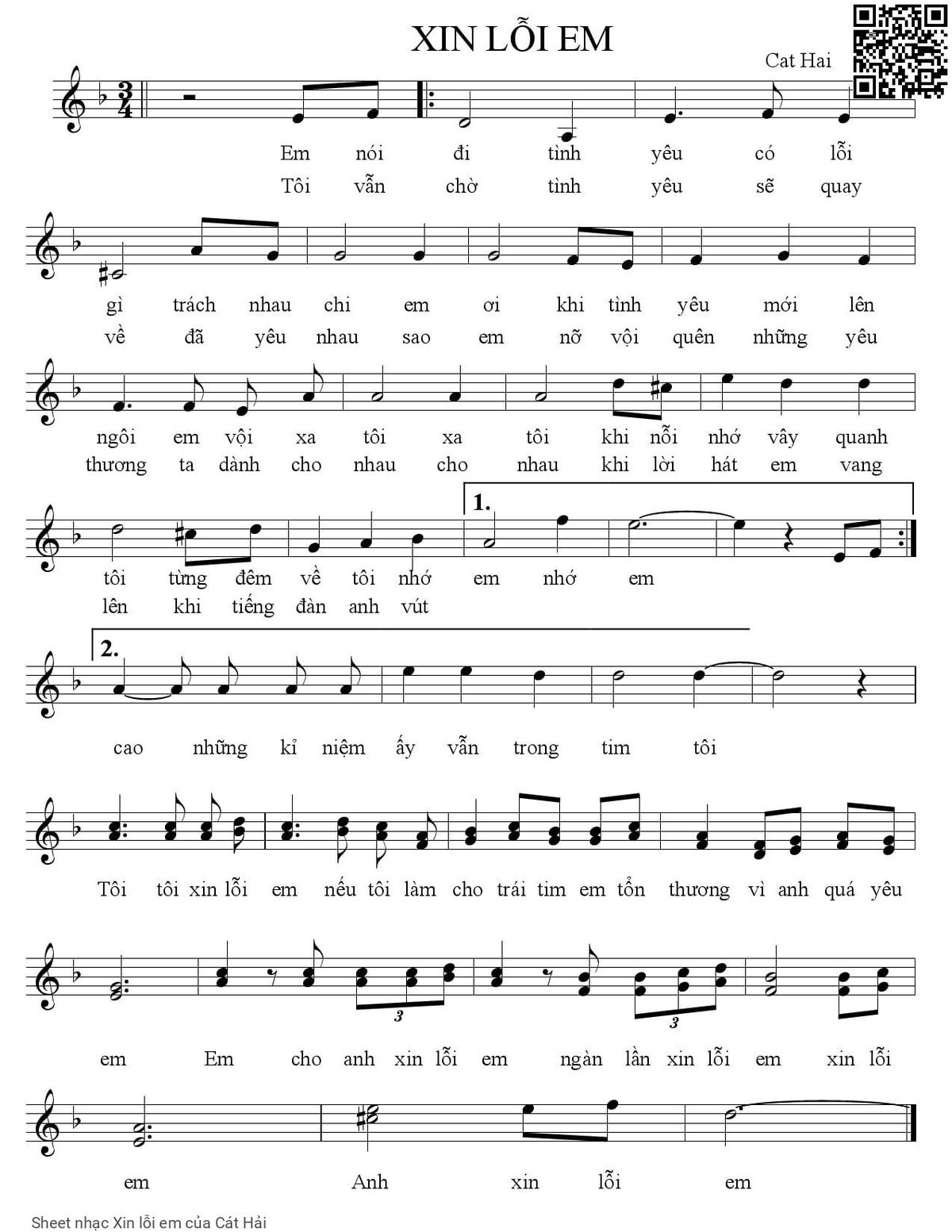 Phần nghe hát Xin lỗi em (Cát Hải) được nhúng từ Youtube, Musescore hoặc link ngoài và chịu sự kiểm soát bản quyền của bên thứ ba đó, vì vậy có thể bị xóa hoặc chèn quảng cáo bất kỳ lúc nào. Nếu bạn không nghe - xem được ca sĩ hát tức là đã bị Youtube hoặc Musescore kiểm soát.