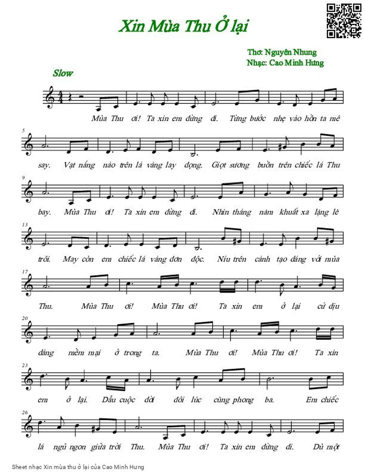 Cao Minh Hưng Mùa Thu ơi Ta xin em đừng đi [PDF] [Sheet] [Lời H.A] [Mp4/Midi]