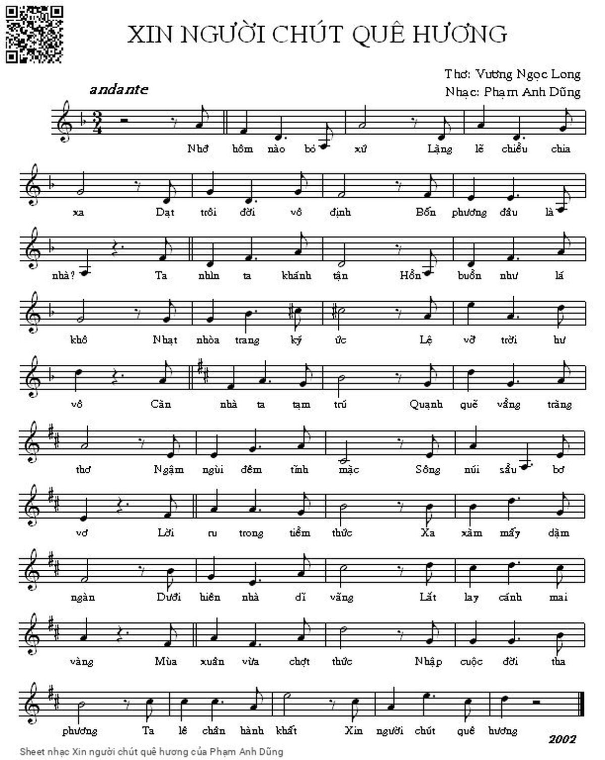 Chọn nút dấu + để tăng tông lên nửa cung, nút dấu - để giảm tông xuống nửa cung. Rê chuột vào hợp âm để xem các thế bấm hợp âm của bài hát Xin người chút quê hương.