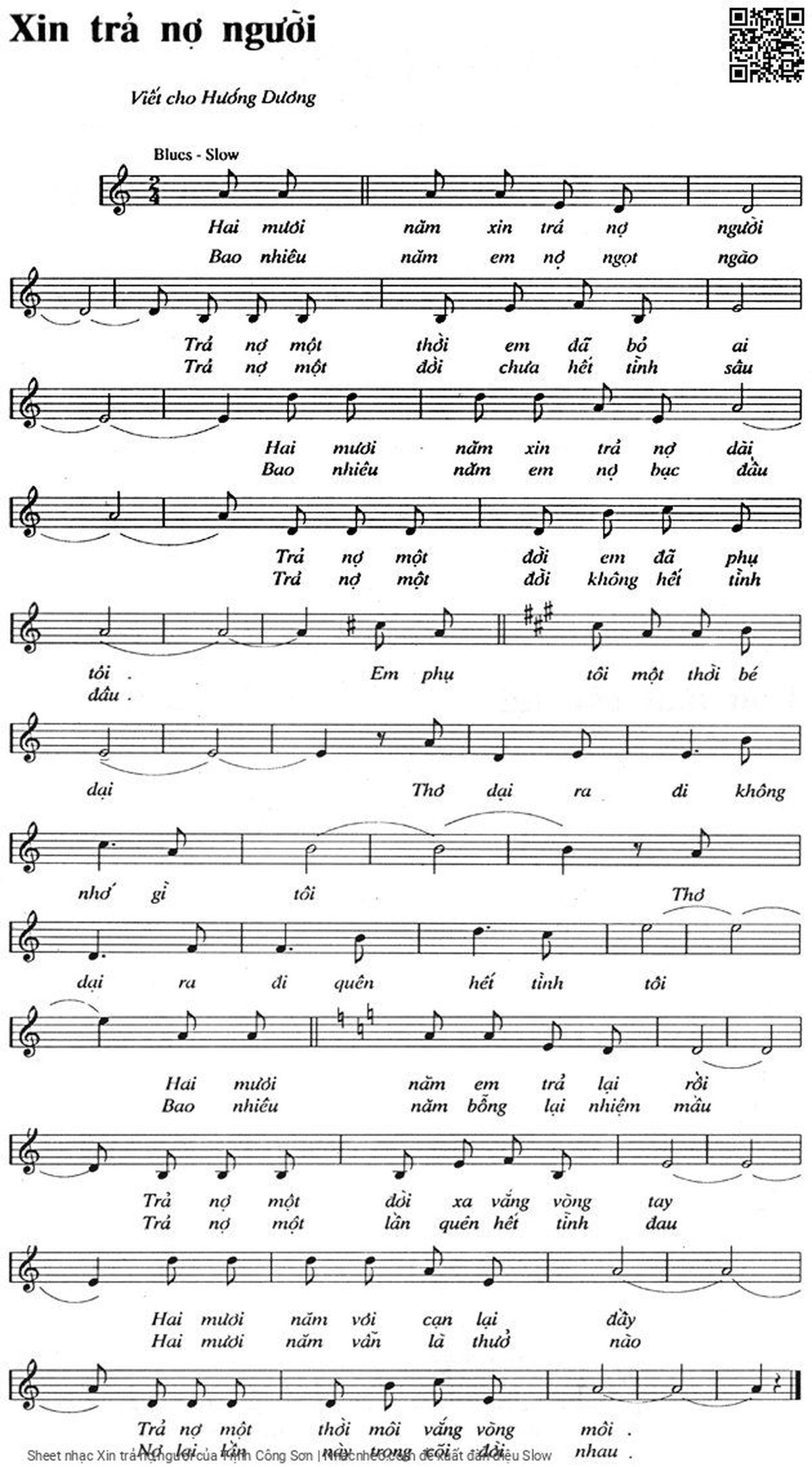 Trịnh Công Sơn Hai mươi năm xin trả nợ người Trả nợ một thời em đã bỏ ai [PDF] [Sheet] [Lời H.A] [Mp4/Midi]