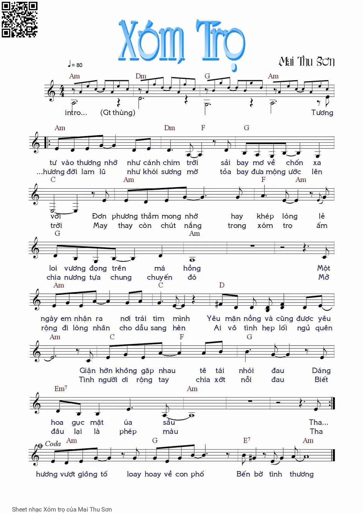 Phần nghe hát Xóm trọ (Mai Thu Sơn) được nhúng từ Youtube, Musescore hoặc link ngoài và chịu sự kiểm soát bản quyền của bên thứ ba đó, vì vậy có thể bị xóa hoặc chèn quảng cáo bất kỳ lúc nào. Nếu bạn không nghe - xem được ca sĩ hát tức là đã bị Youtube hoặc Musescore kiểm soát.