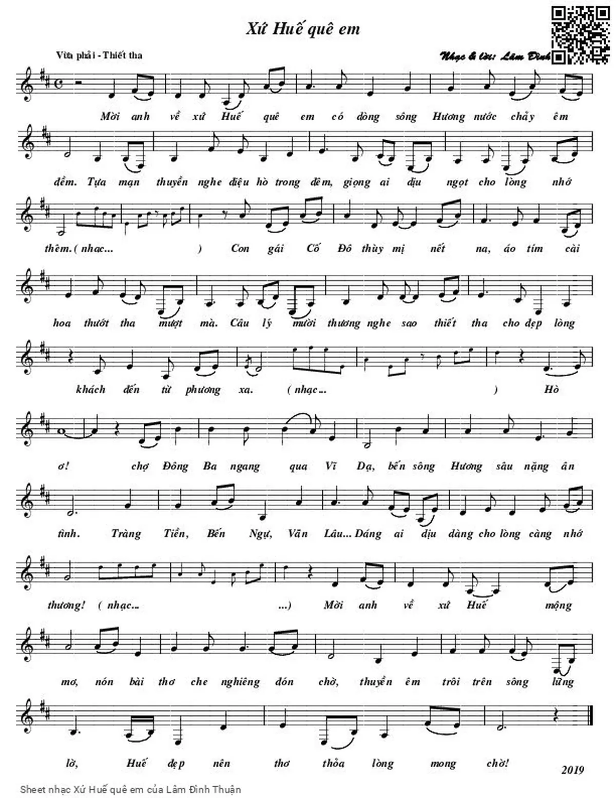 Lâm Đình Thuận Mời anh về xứ Huế quê em Có dòng sông Hương nước chảy êm đềm [PDF] [Sheet] [Lời H.A] [Mp4/Midi]