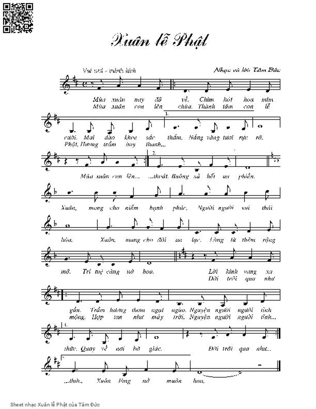 Tâm Đức Mùa xuân nay đã về chim hót hoa mỉm cười [PDF] [Sheet] [Lời H.A] [Mp4/Midi]