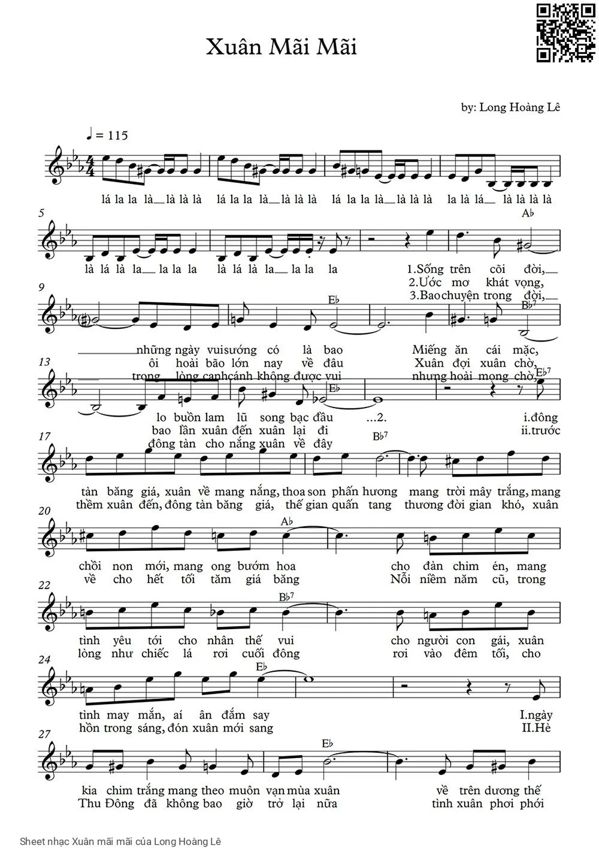 Phần nghe hát Xuân mãi mãi (Long Hoàng Lê) được nhúng từ Youtube, Musescore hoặc link ngoài và chịu sự kiểm soát bản quyền của bên thứ ba đó, vì vậy có thể bị xóa hoặc chèn quảng cáo bất kỳ lúc nào. Nếu bạn không nghe - xem được ca sĩ hát tức là đã bị Youtube hoặc Musescore kiểm soát.