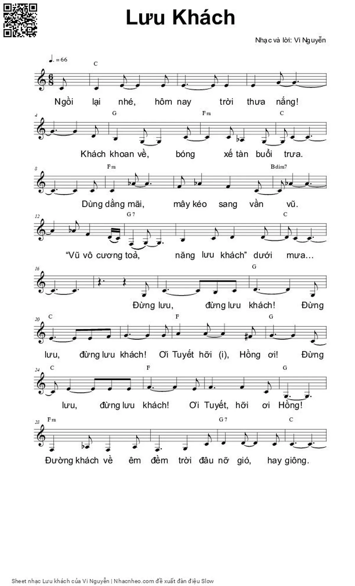 Phần nghe hát Lưu khách (Vi Nguyễn) được nhúng từ Youtube, Musescore hoặc link ngoài và chịu sự kiểm soát bản quyền của bên thứ ba đó, vì vậy có thể bị xóa hoặc chèn quảng cáo bất kỳ lúc nào. Nếu bạn không nghe - xem được ca sĩ hát tức là đã bị Youtube hoặc Musescore kiểm soát.