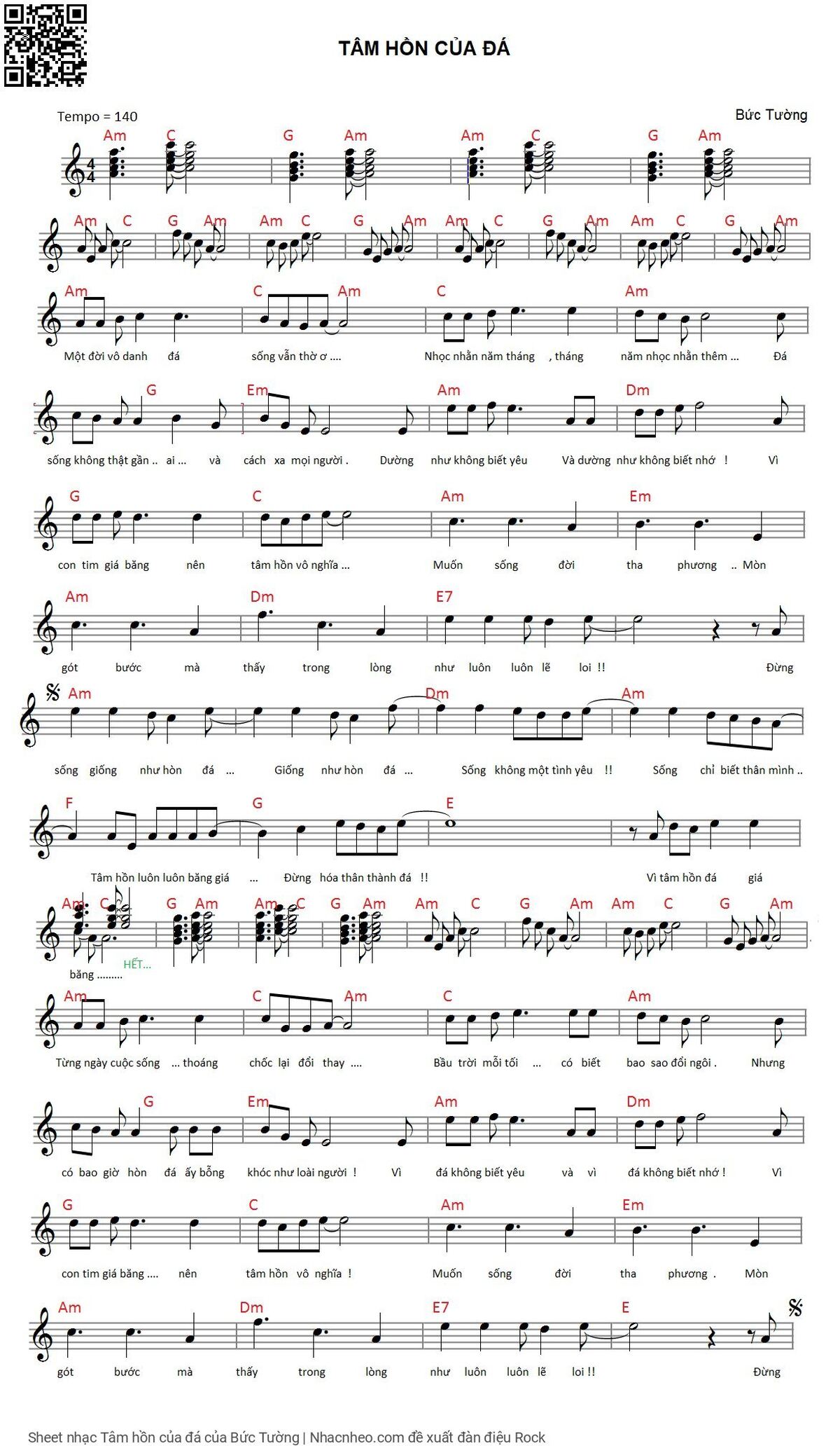 Chọn nút dấu + để tăng tông lên nửa cung, nút dấu - để giảm tông xuống nửa cung. Rê chuột vào hợp âm để xem các thế bấm hợp âm của bài hát Tâm hồn của đá.