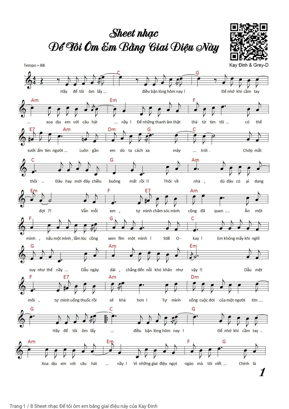 Kay Đinh Hãy để tôi ôm lấy điều bận lòng hôm nay là có kèm sheet Piano solo ở bên dưới [PDF] [Sheet] [Lời H.A] [Mp4/Midi]
