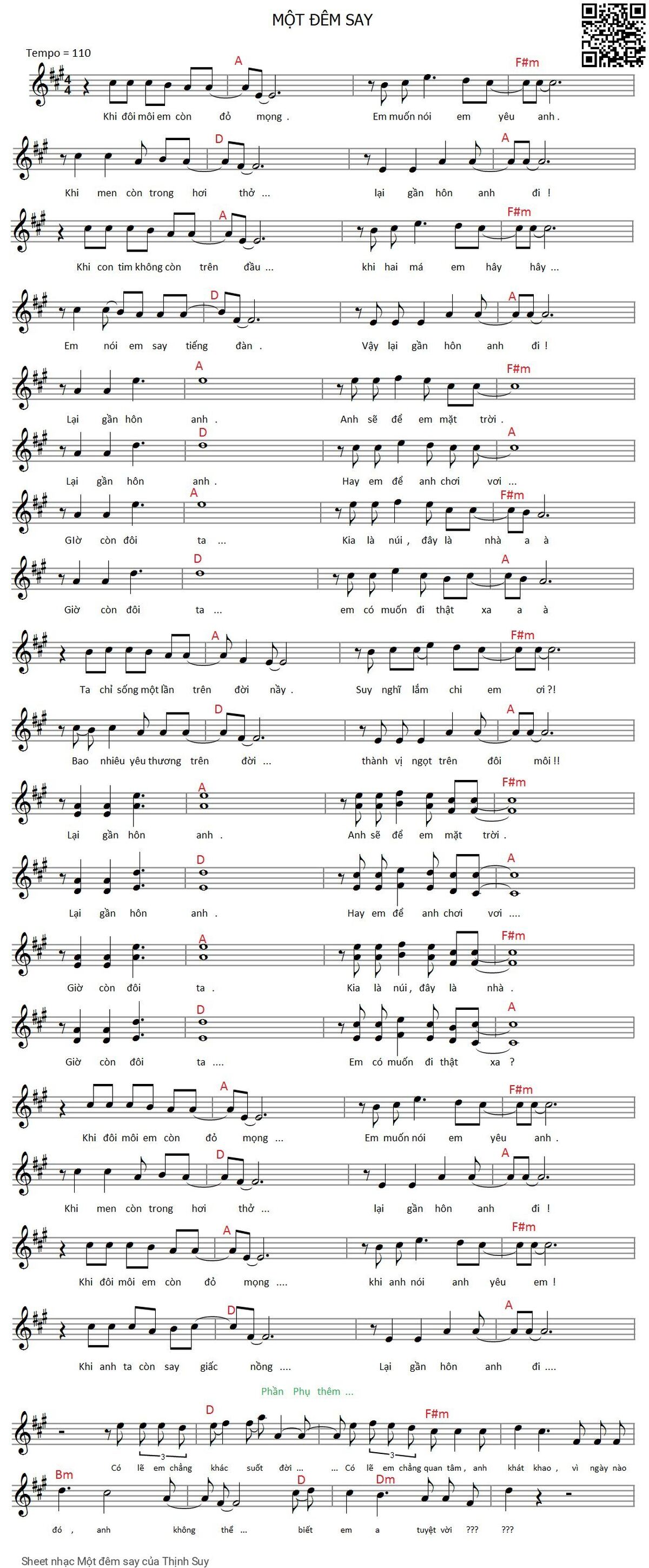 Phần nghe hát Một đêm say (Thịnh Suy) được nhúng từ Youtube, Musescore hoặc link ngoài và chịu sự kiểm soát bản quyền của bên thứ ba đó, vì vậy có thể bị xóa hoặc chèn quảng cáo bất kỳ lúc nào. Nếu bạn không nghe - xem được ca sĩ hát tức là đã bị Youtube hoặc Musescore kiểm soát.