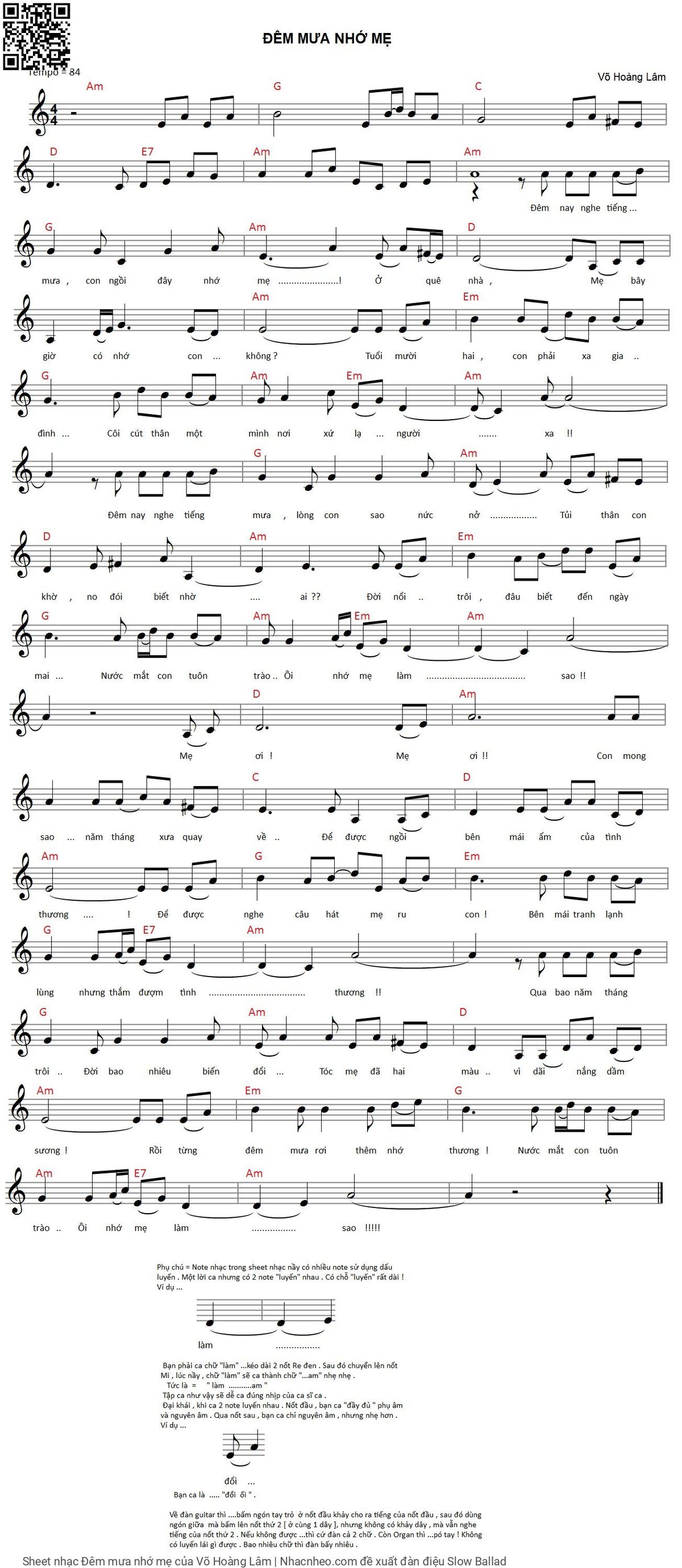 Võ Hoàng Lâm Đêm nay nghe tiếng mưa con ngồi đây nhớ mẹ [PDF] [Sheet] [Lời H.A] [Mp4/Midi]