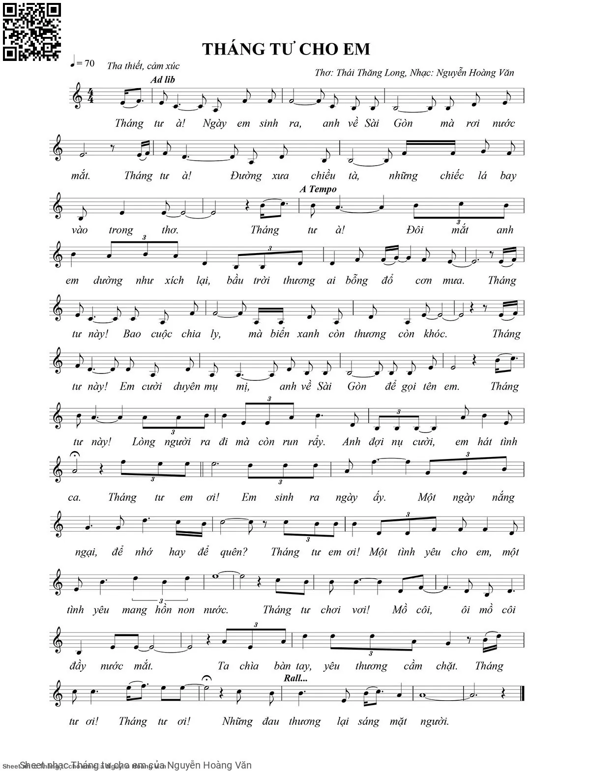 Nguyễn Hoàng Văn Tháng tư à Ngày em sinh ra Anh về Sài Gòn mà rơi nước mắt [PDF] [Sheet] [Lời H.A] [Mp4/Midi]
