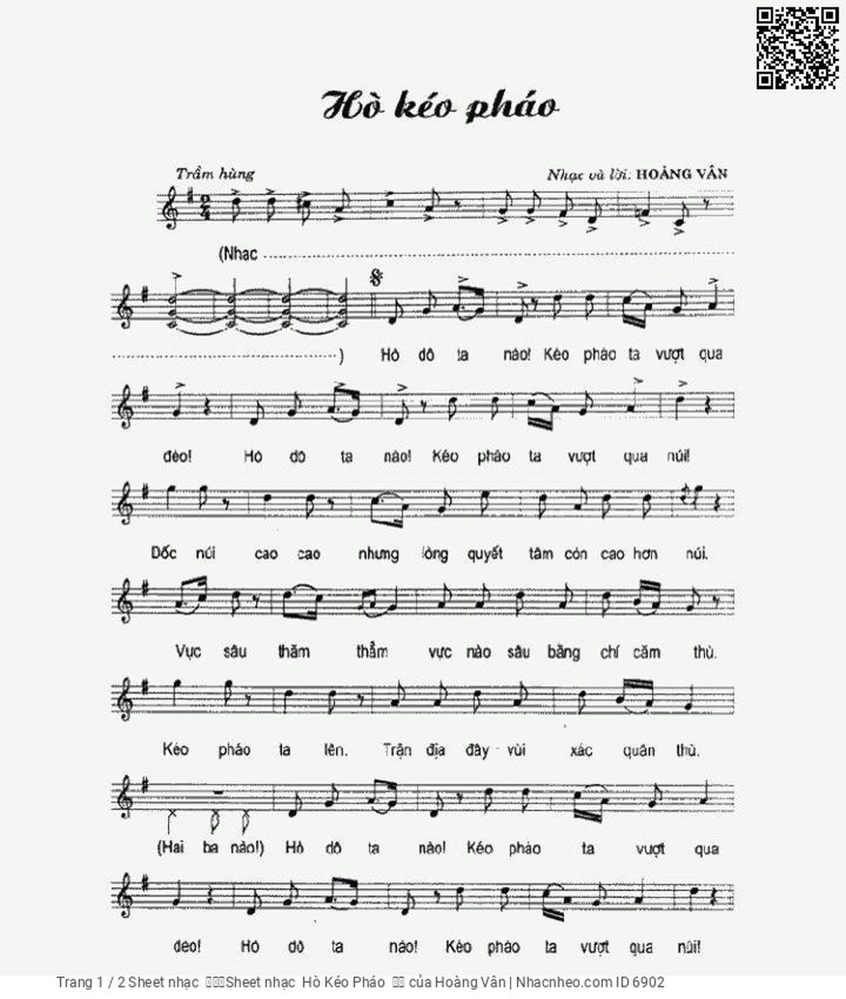 Trang 1 của Sheet nhạc PDF bài hát Hò Kéo Pháo - Hoàng Vân