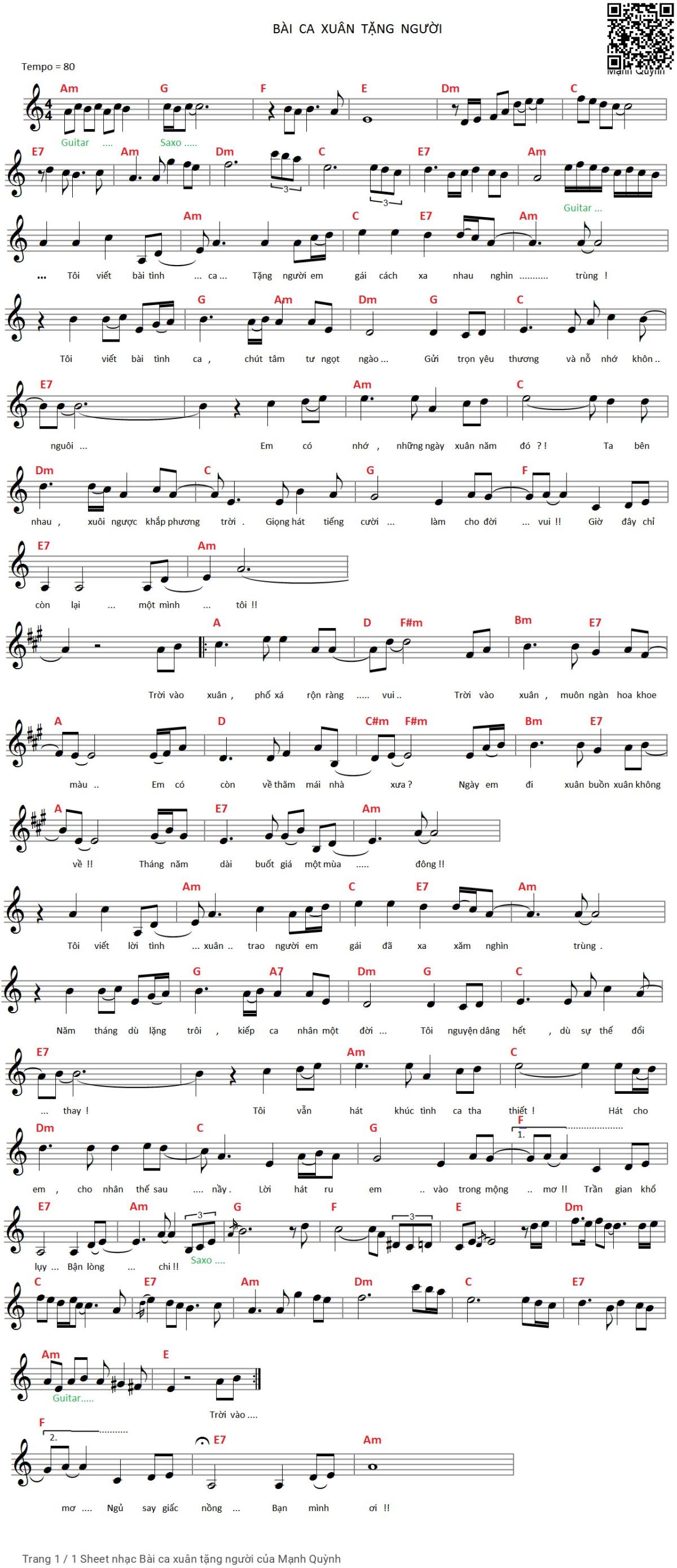 Các sheet PDF tương tự Bài ca xuân tặng người: