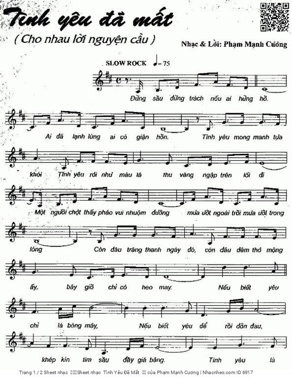 Trang 1 của Sheet nhạc PDF bài hát Tình Yêu Đã Mất 		 - Phạm Mạnh Cương