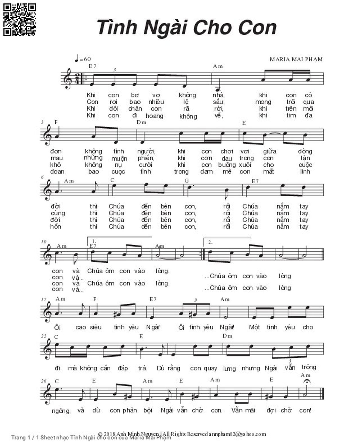 Maria Mai Phạm Khi con bơ vơ không nhà Khi con cô đơn không tình người [PDF] [Sheet] [Lời H.A] [Mp4/Midi]