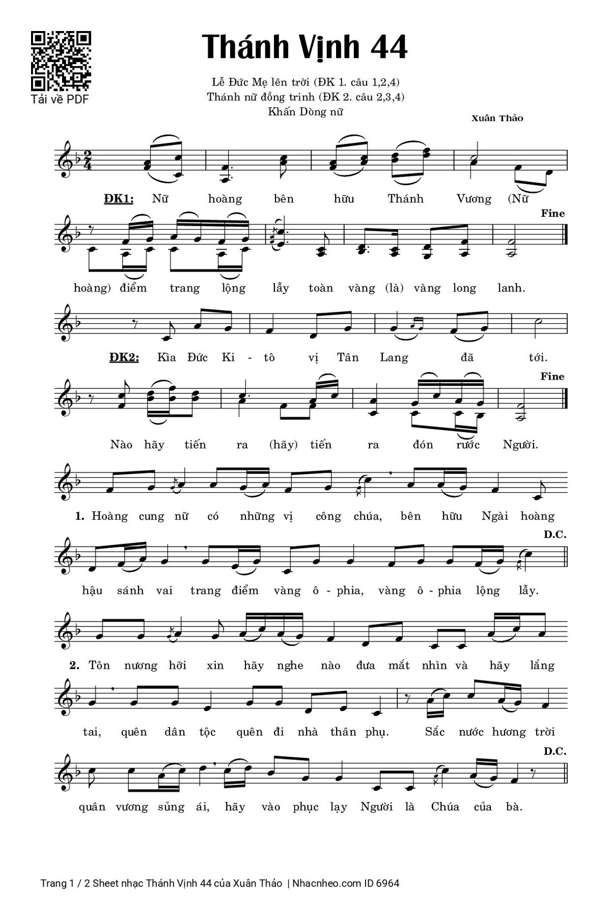 Các sheet PDF cùng tên Thánh Vịnh 44: