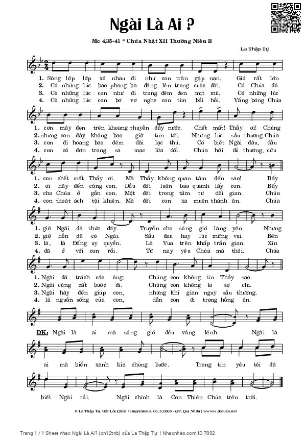 Các sheet PDF tương tự Ngài Là Ai? (Chúa Nhật 12 B):