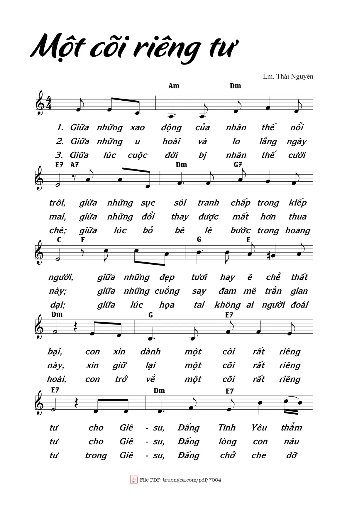 ĐK. Một cõi riêng [C] tư trong lòng [Dm] con xin dành cho [Am] Chúa