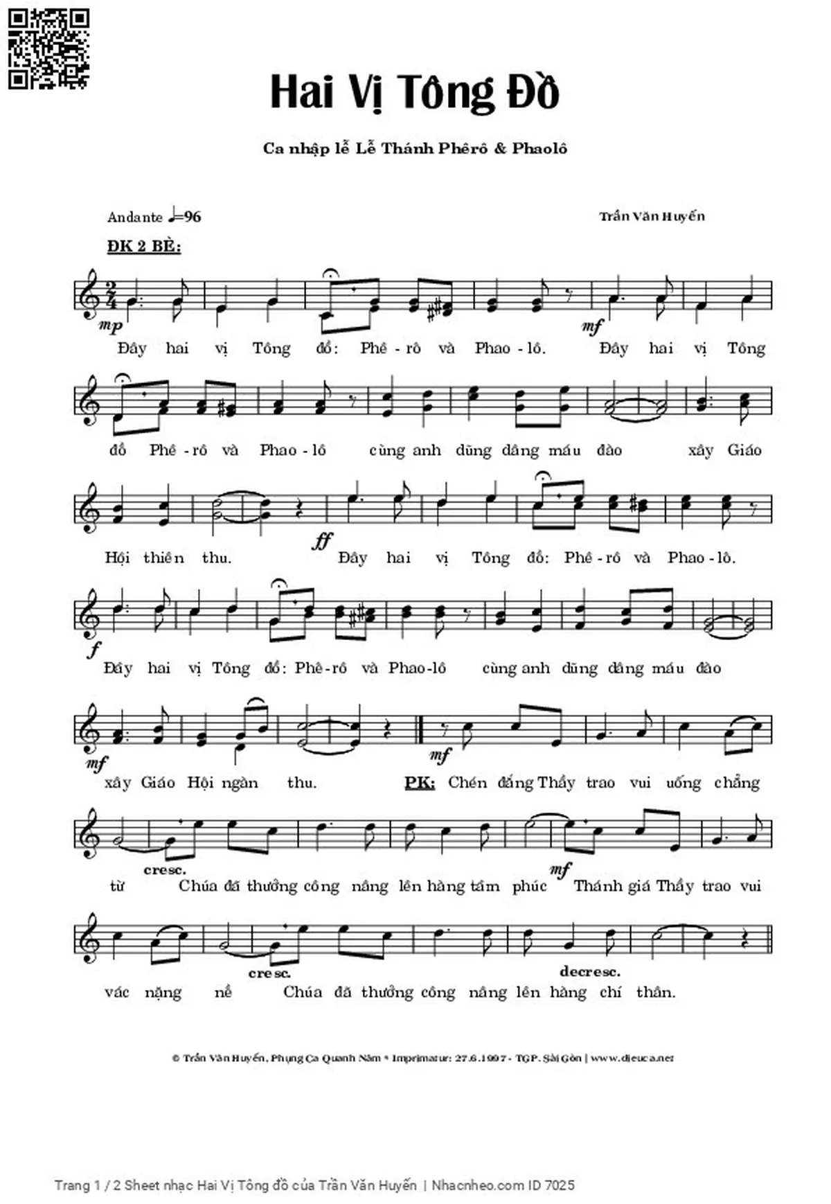 Các sheet PDF tương tự Hai Vị Tông đồ: