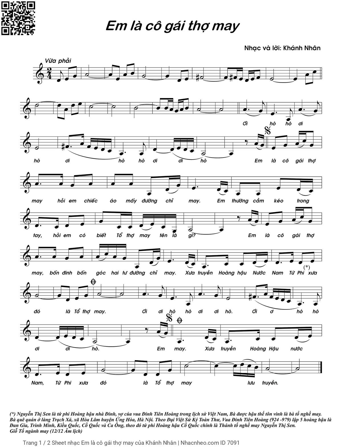 Khánh Nhân Ơi ơi hò hò ơi ơi hò Ơi hò [PDF] [Sheet] [Lời H.A] [Mp4/Midi]