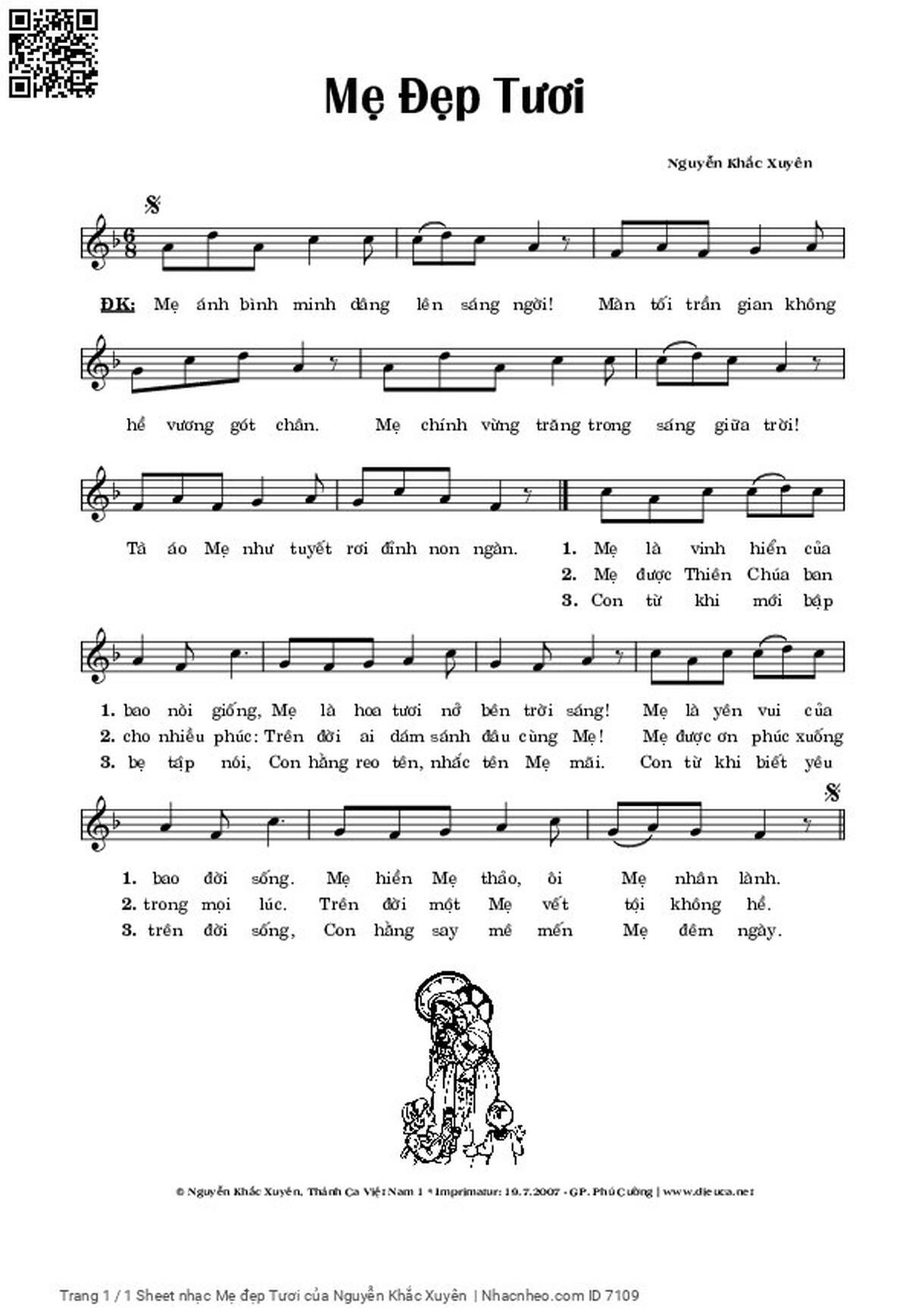 Nguyễn Khắc Xuyên Mẹ ánh bình minh dâng lên sáng ngời Màn tối trần gian không hề vương gót chân [PDF] [Sheet] [Lời H.A] [Mp4/Midi]