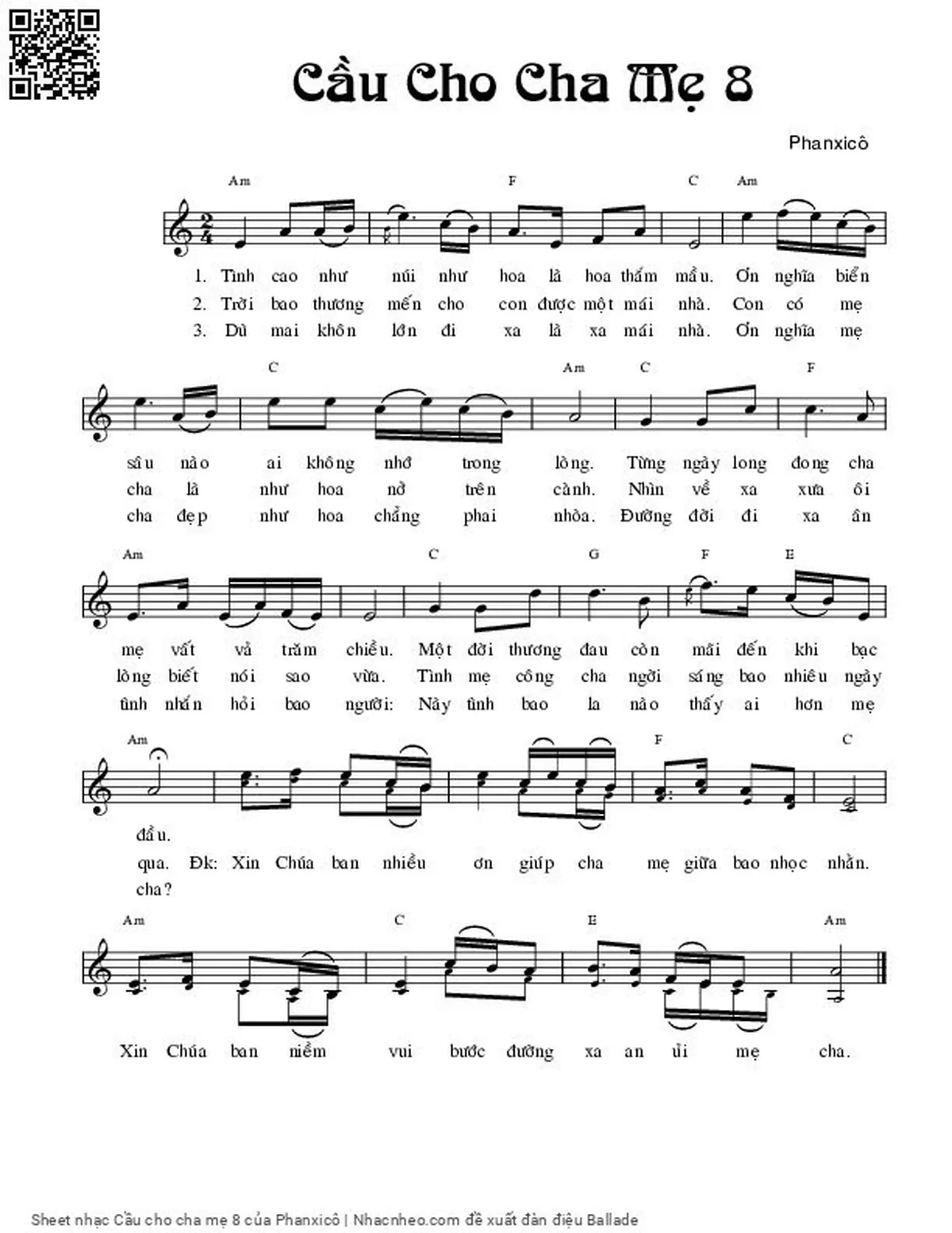 [Am] Xin chúa ban nhiều ơn giúp cha [F] mẹ giữa bao nhọc [C] nhằn