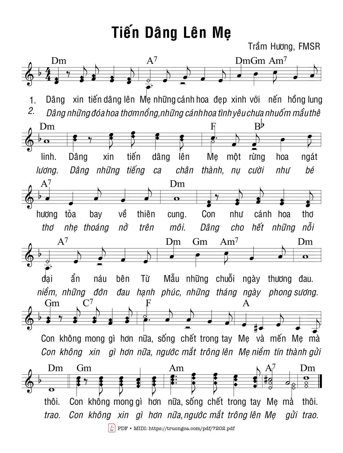 Các sheet PDF cùng tên Tiến Dâng Lên Mẹ:
