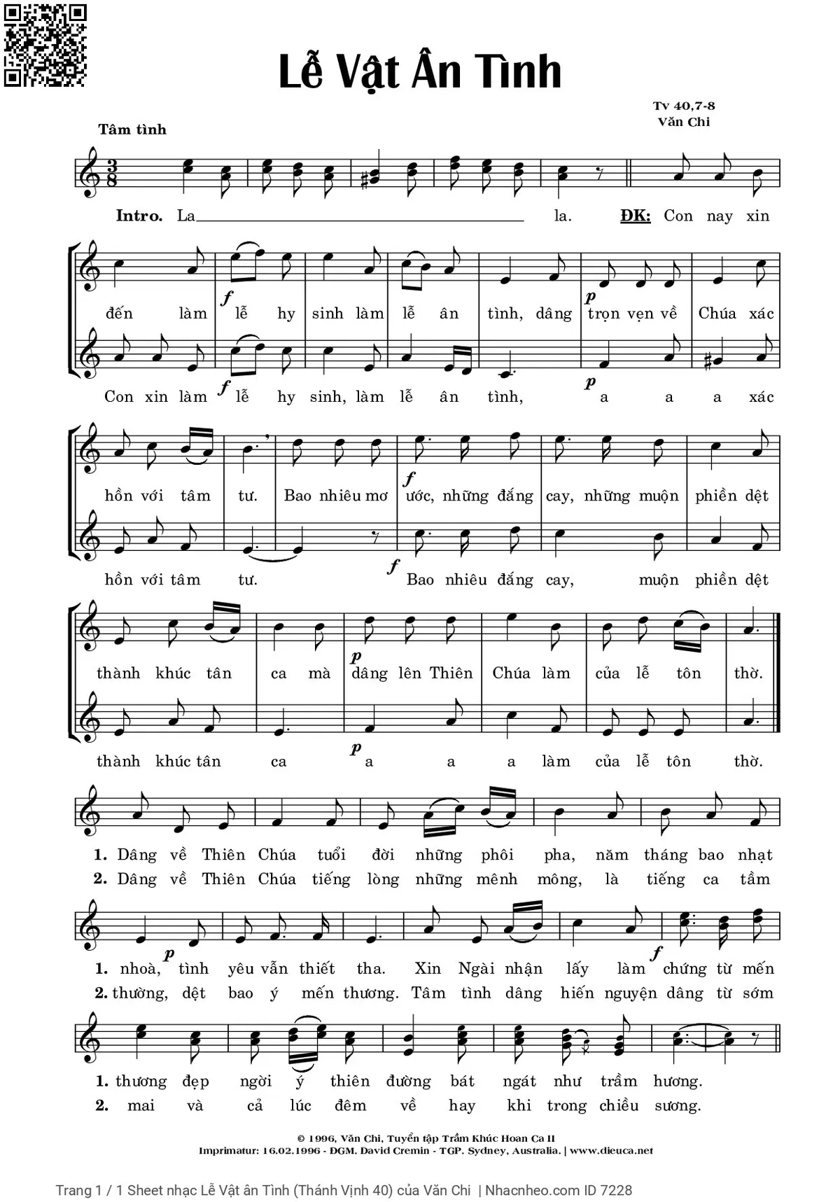 Các sheet PDF tương tự Lễ Vật ân Tình (Thánh Vịnh 40):