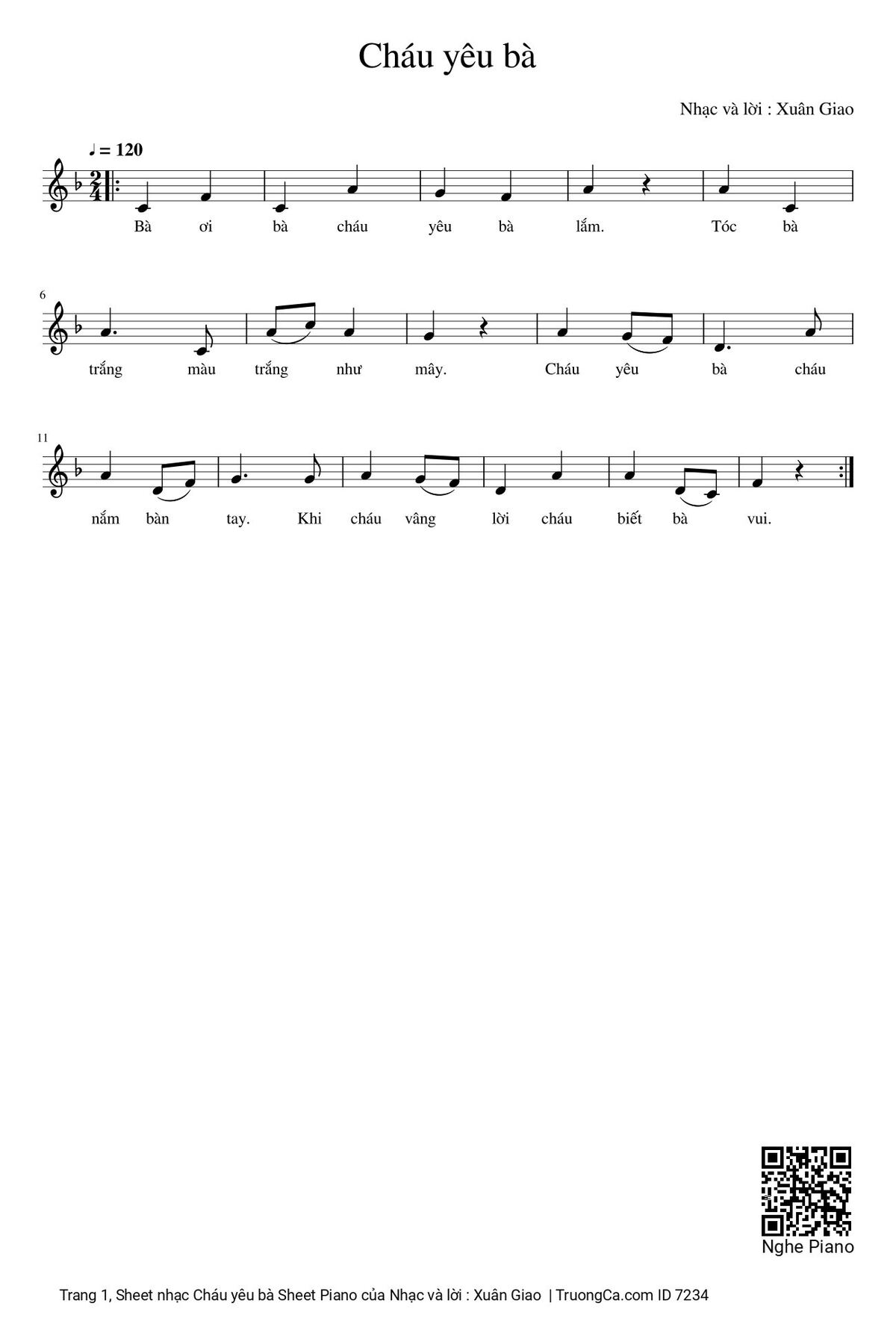 Xuân Giao Bà ơi bà cháu yêu bà lắm Tóc bà trắng [PDF] [Sheet] [Lời H.A] [Mp4/Midi]