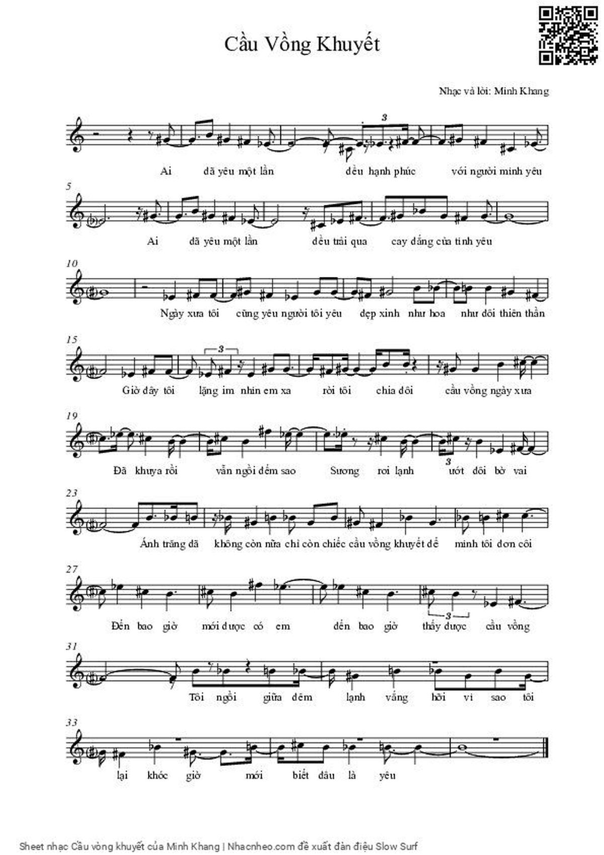 Chọn nút dấu + để tăng tông lên nửa cung, nút dấu - để giảm tông xuống nửa cung. Rê chuột vào hợp âm để xem các thế bấm hợp âm của bài hát Cầu vòng khuyết.