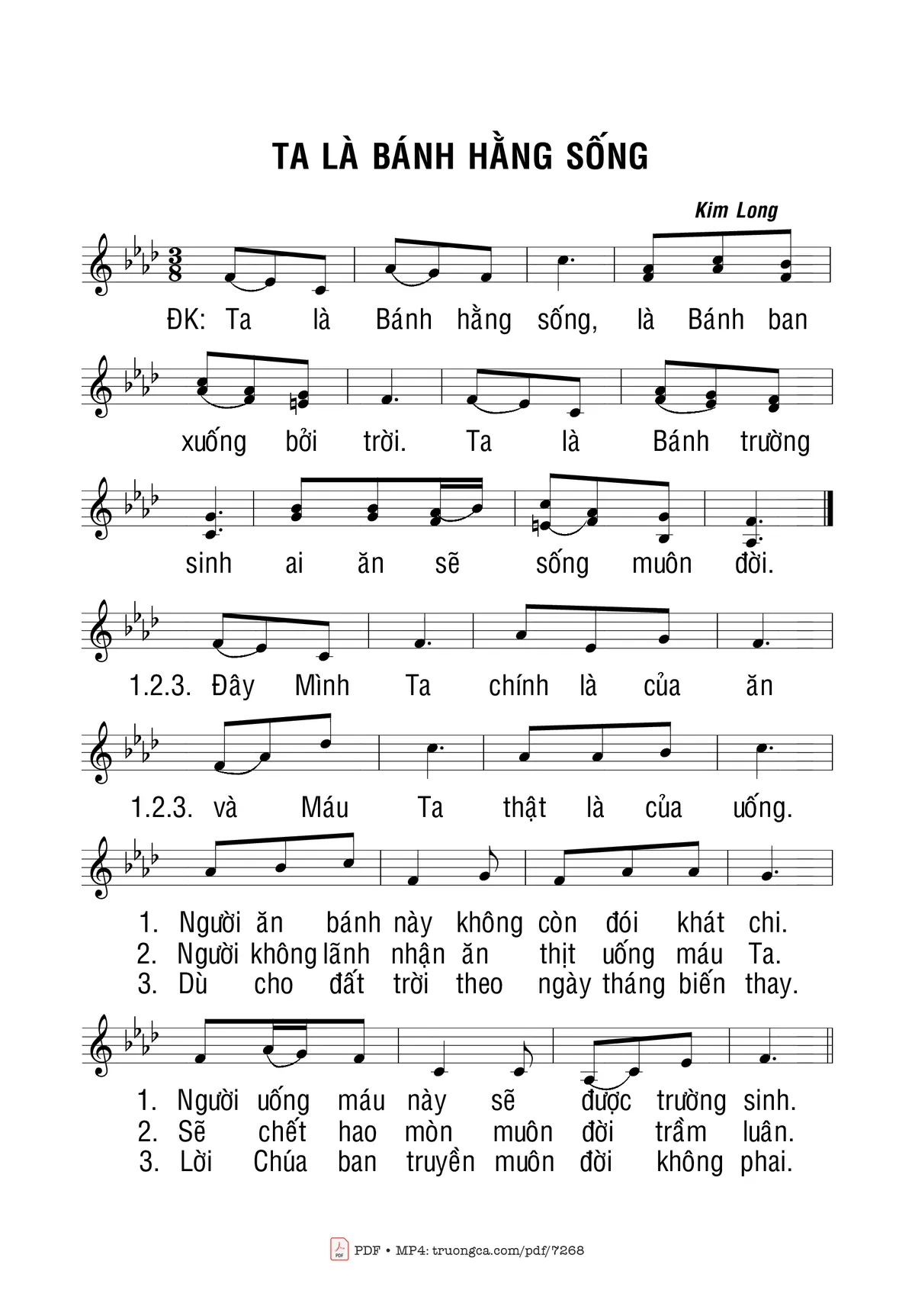 Kim Long Ta là bánh hằng sống là bánh ban xuống bởi trời [PDF] [Sheet] [Lời H.A] [Mp4/Midi]