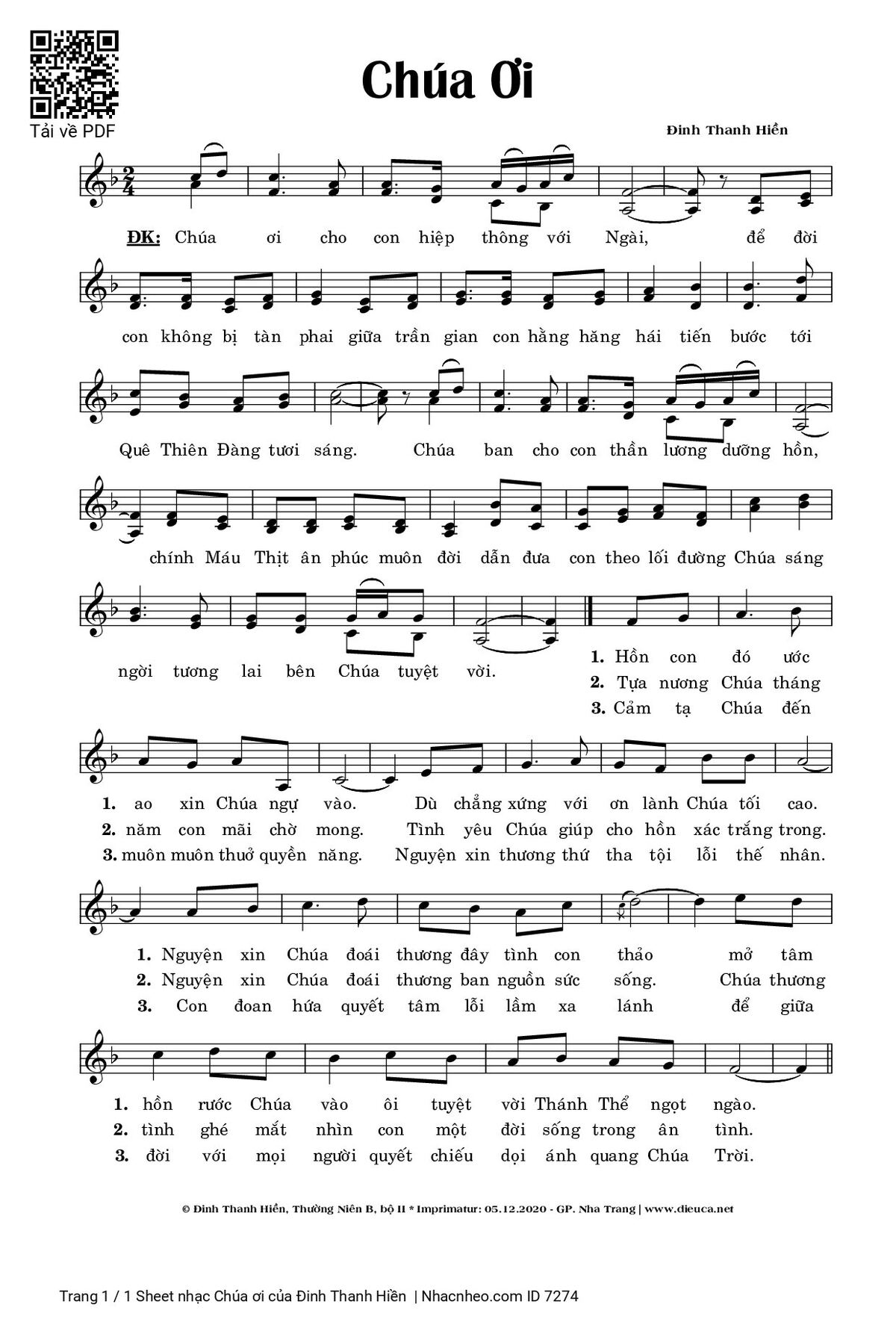 Chọn nút dấu + để tăng tông lên nửa cung, nút dấu - để giảm tông xuống nửa cung. Rê chuột vào hợp âm để xem các thế bấm hợp âm của bài hát Chúa ơi.