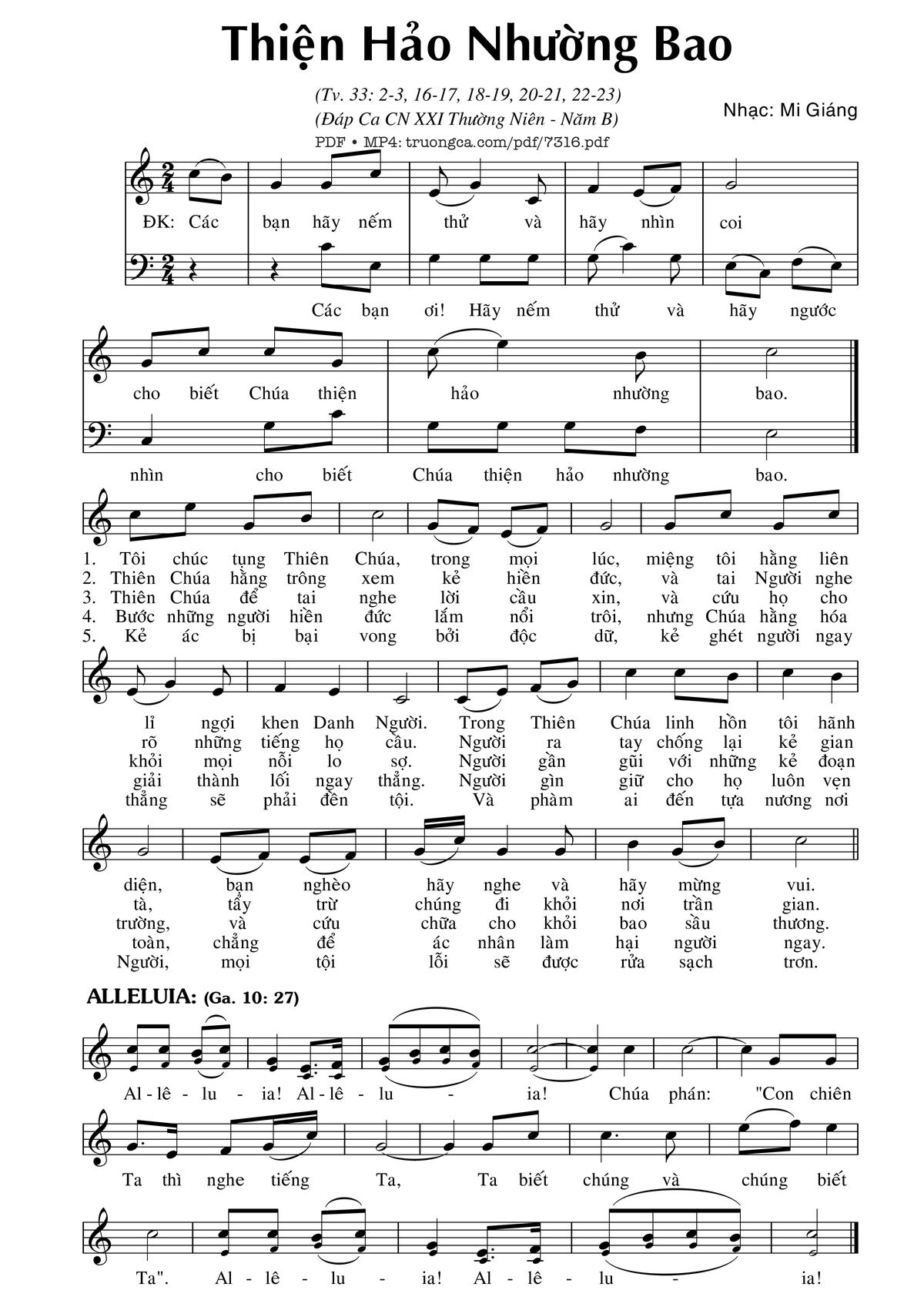Các sheet PDF tương tự Thiện Hảo Nhường Bao (Thánh Vịnh 33) *: