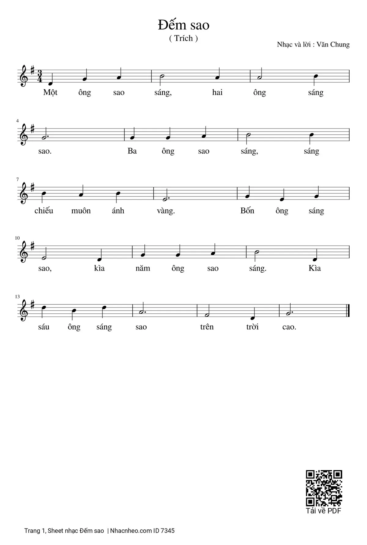 Văn Chung Một ông sao sáng hai ông sáng sao Ba ông sao sáng [PDF] [Sheet] [Lời H.A] [Mp4/Midi]