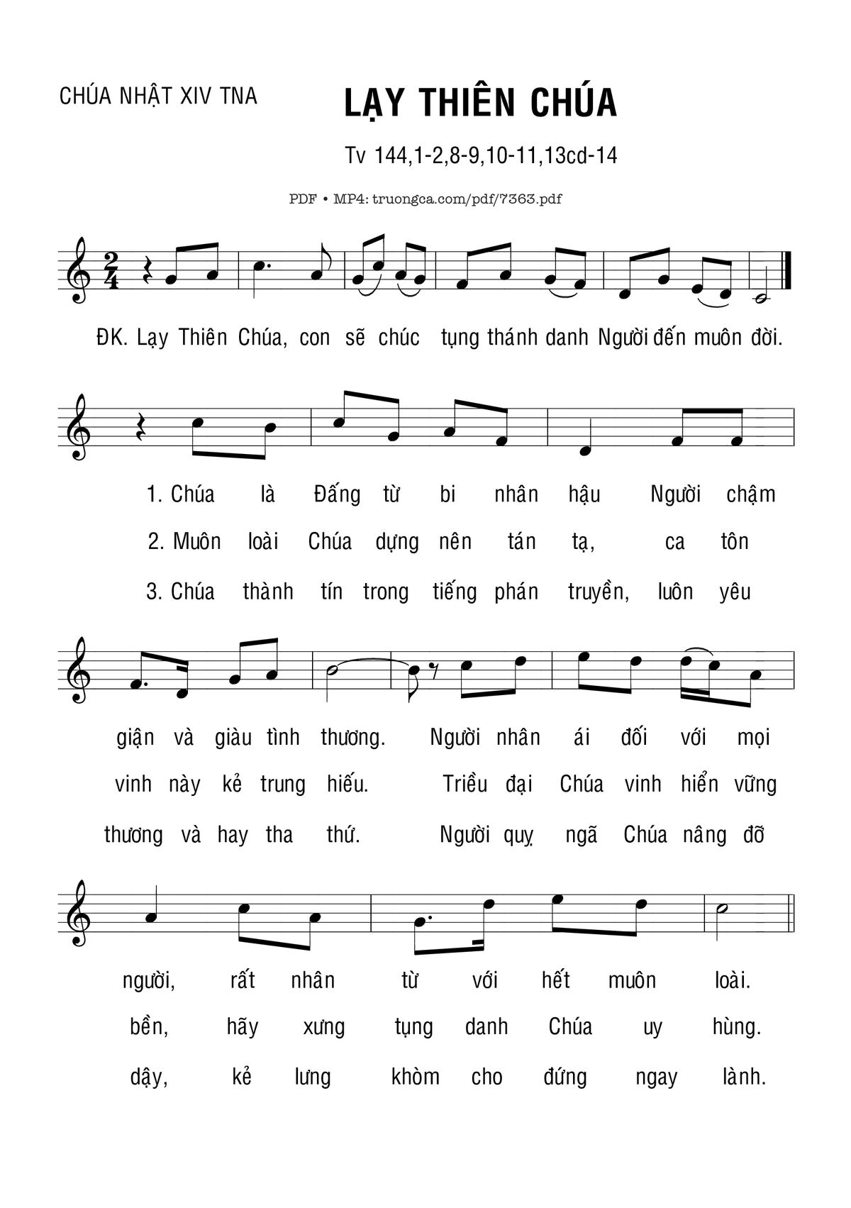 Các sheet PDF tương tự Lạy Thiên Chúa (Thánh Vịnh 144):