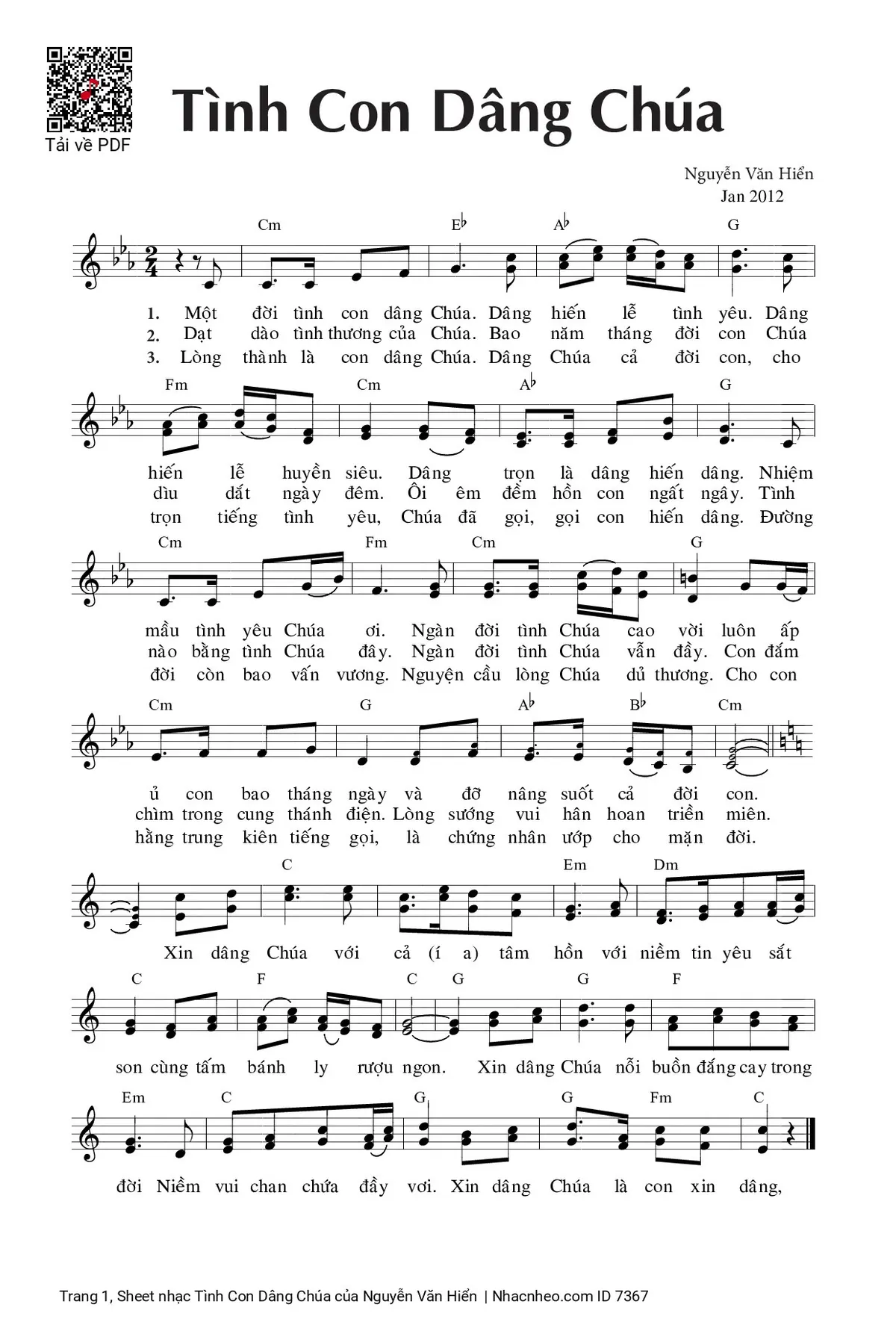 Các sheet PDF cùng tên Tình Con Dâng Chúa: