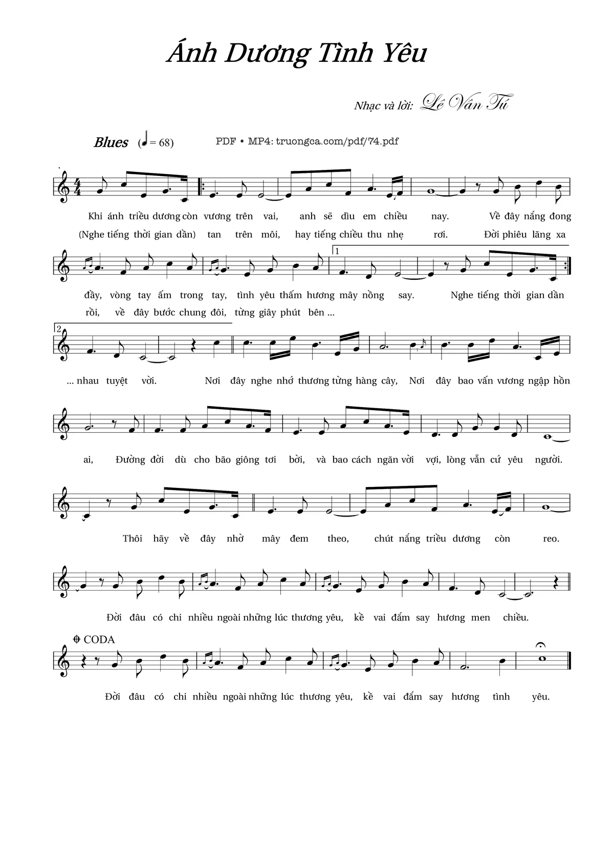 Lê Vân Tú Khi ánh triều dương còn vương trên vai Anh sẽ dìu em chiều nay [PDF] [Sheet] [Lời H.A] [Mp4/Midi]