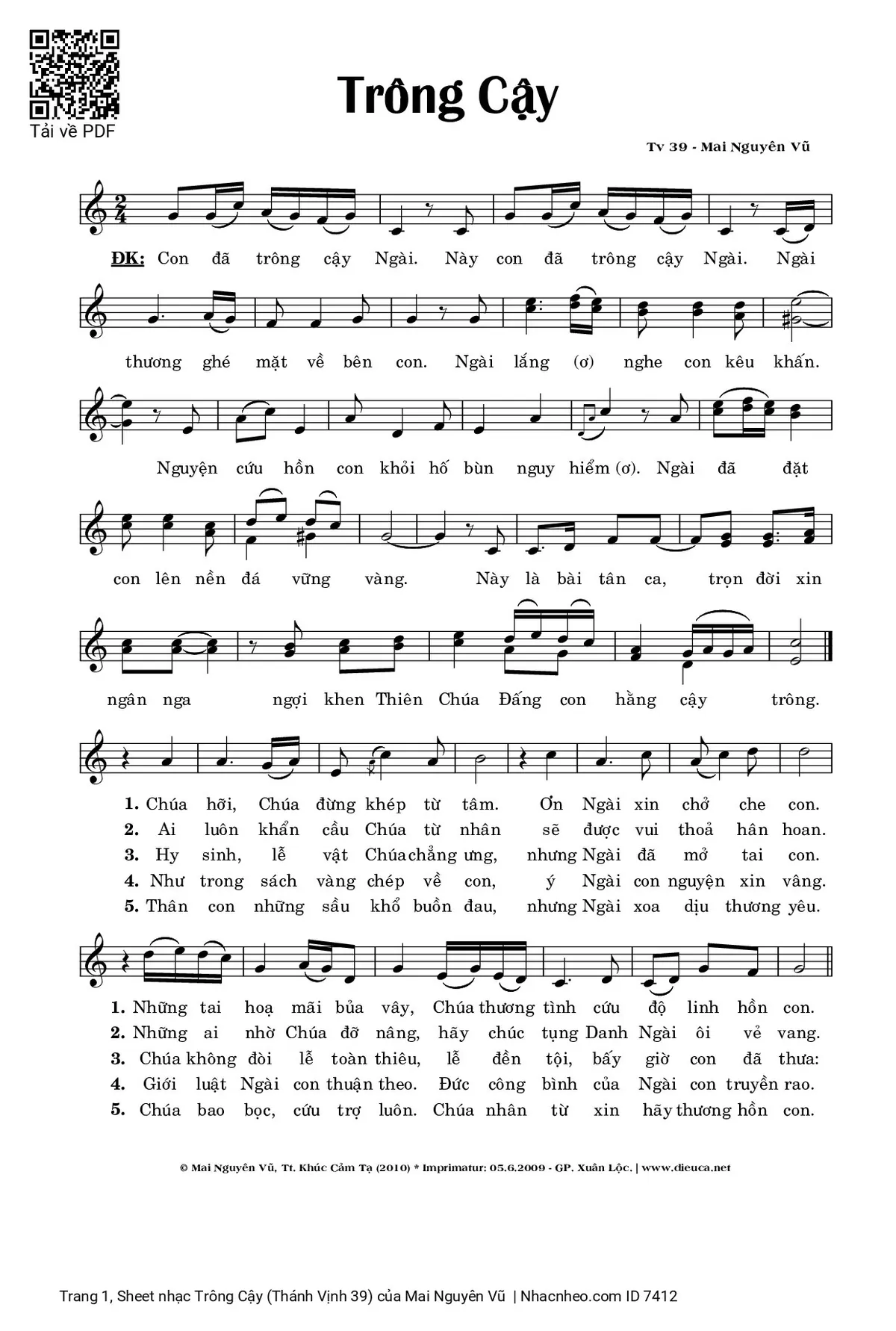 Các sheet PDF tương tự Trông Cậy (Thánh Vịnh 39):