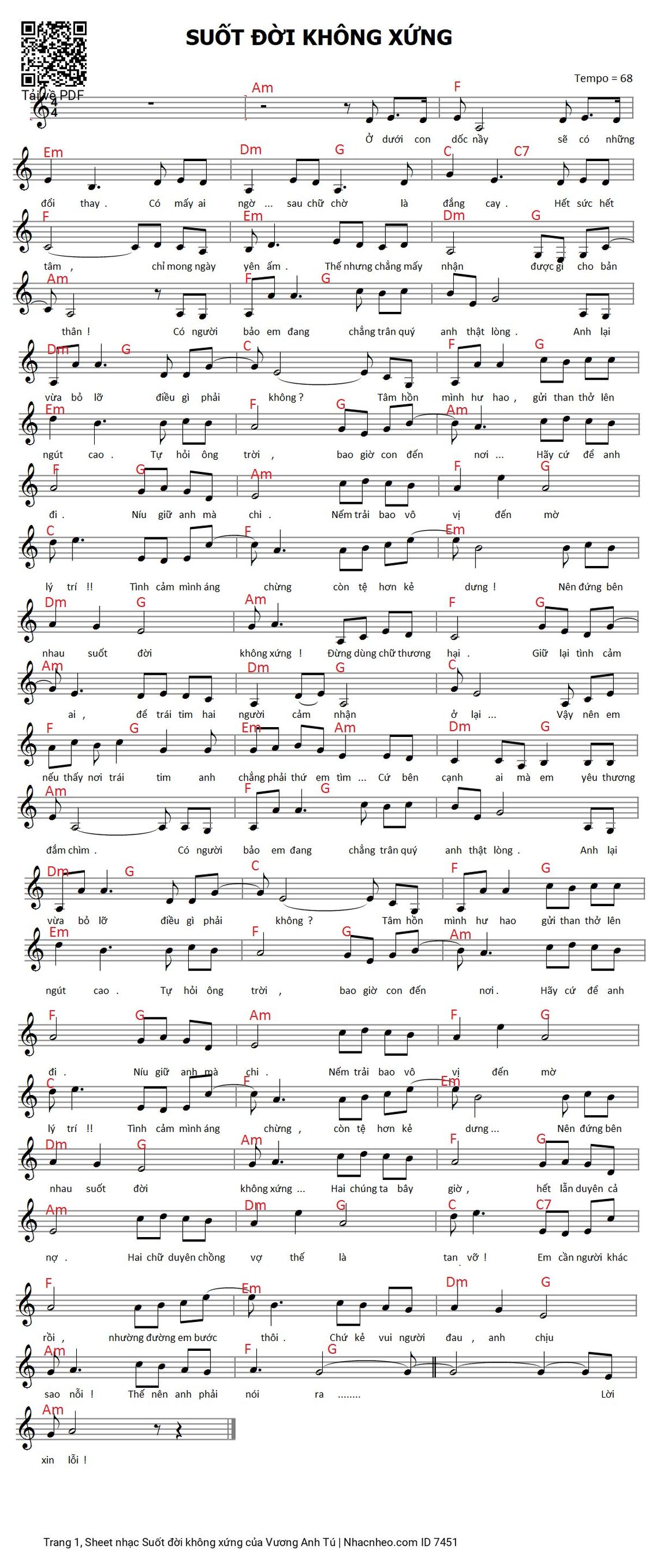Các sheet PDF tương tự Suốt đời không xứng: