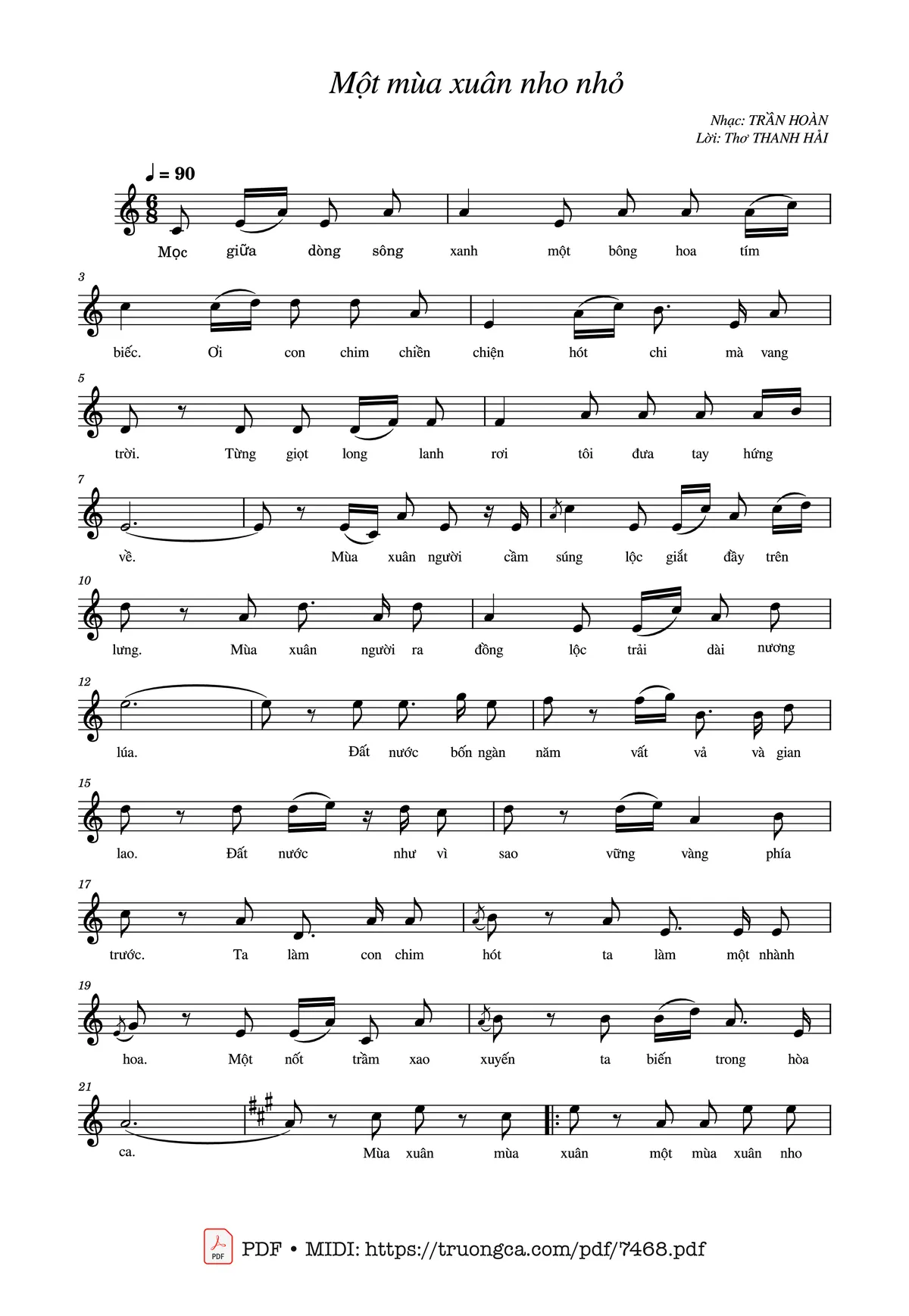 Trần Hoàn Mọc giữa dòng sông xanh, Một bông hoa tím biếc [PDF] [Sheet] [Lời H.A] [Mp4/Midi]